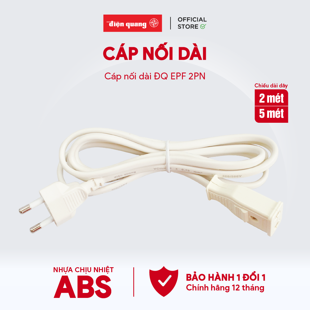 - Cáp Nối Dài Điện Quang ĐQ EPF 5W.2PN là sản phẩm đồ điện thuộc thương hiệu Điện Quang uy tín tại Việt Nam. Trong nhiều năm hoạt động, các sản phẩm Điện Quang chiếm được sự tin tưởng của người tiêu dùng Việt, và dần khẳng định tên tuổi của mình.