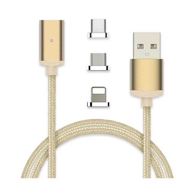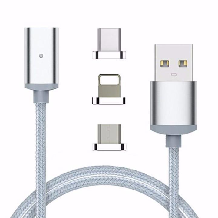 Cáp sạc từ nam châm 3 in 1 Lighting, Micro USB và Type-C Sợi cáp dài khoảng 1m gồm đầu vào USB và 3 đầu ra, có thể sạc và đồng bộ dữ liệu cho hầu hết các điện thoại mới hiện nay: