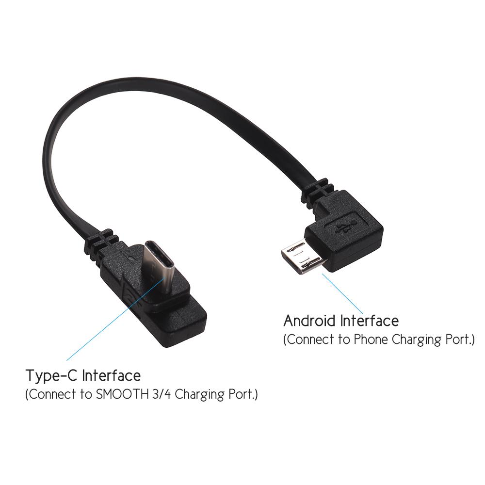 Features: Zhiyun Type-C Charging Cable for Android Smartphones Supports Zhiyun Smooth 4, Smooth 3 90 Degree Elbow Design: Support Shooting and Charging Strong and Durable: High Strength Composite Materials, Not Easy to Break Length: 15.3cm
