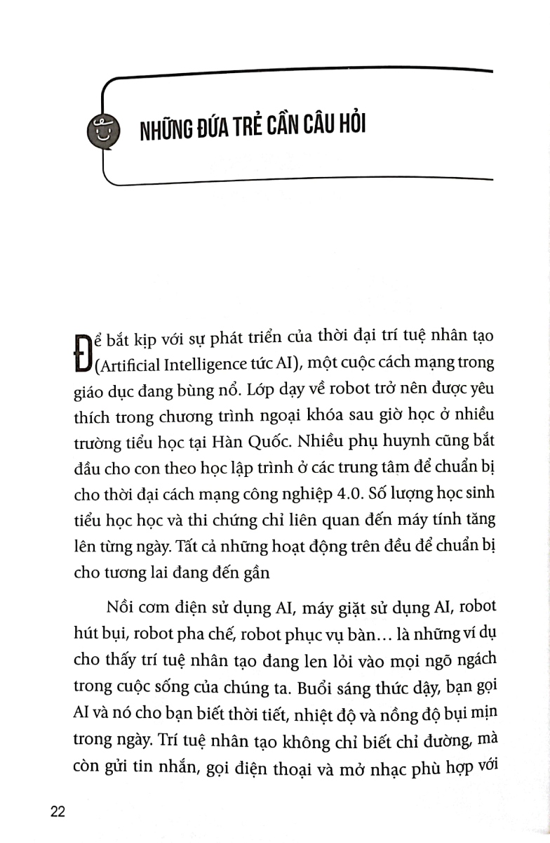 Trẻ em hiện nay lớn lên với các thiết bị thông minh từ khi mới sinh ra, chúng đang trải nghiệm một môi trường phát triển hoàn toàn khác với thế hệ của chúng ta. Thời đại cuộc cách mạng công nghiệp lần thứ tư được đại diện bởi dữ liệu lớn và trí tuệ nhân tạo khiến thời thế đang thay đổi nhanh chóng đến mức ngay cả người lớn cũng khó theo kịp.