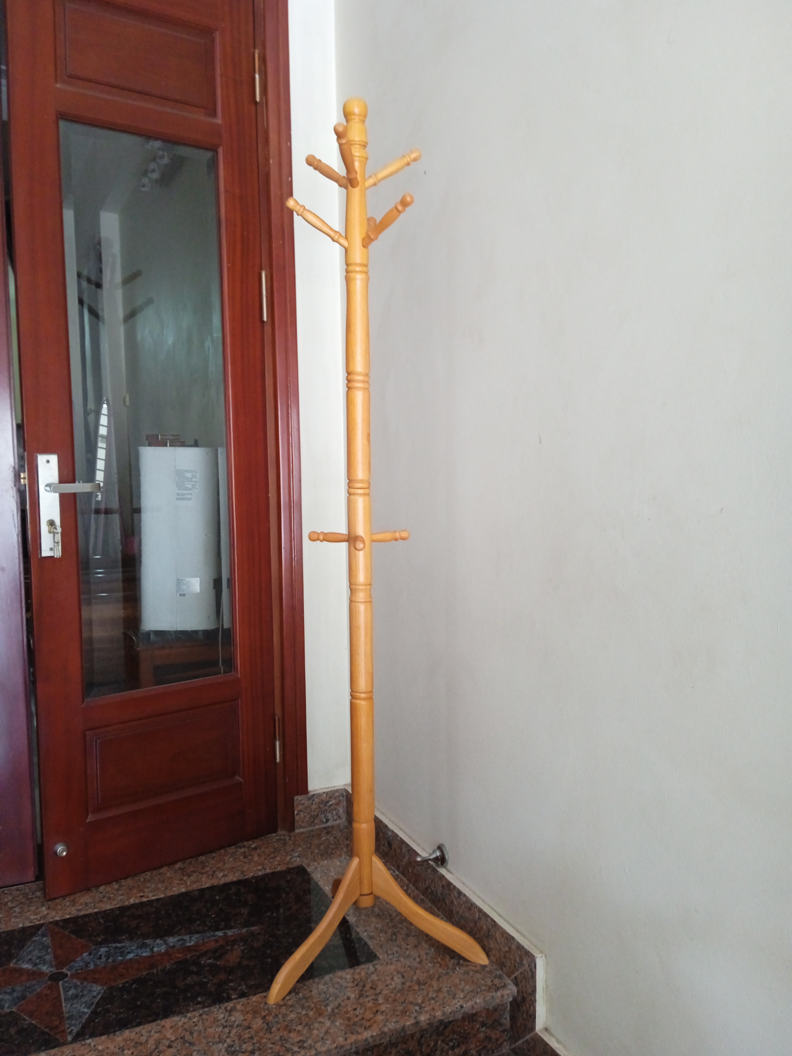 Cây treo quần áo là vật dụng cần thiết cho mọi nhà giúp đồ dùng cá nhân được gọn gàng ngăn nắp hơn. Chất liệu gỗ tự nhiên được tiện từng chi tiết tỉ mỉ, mẫu mã hiện đại, sơn màu bóng mịn làm sản phẩm sang trọng hơn.