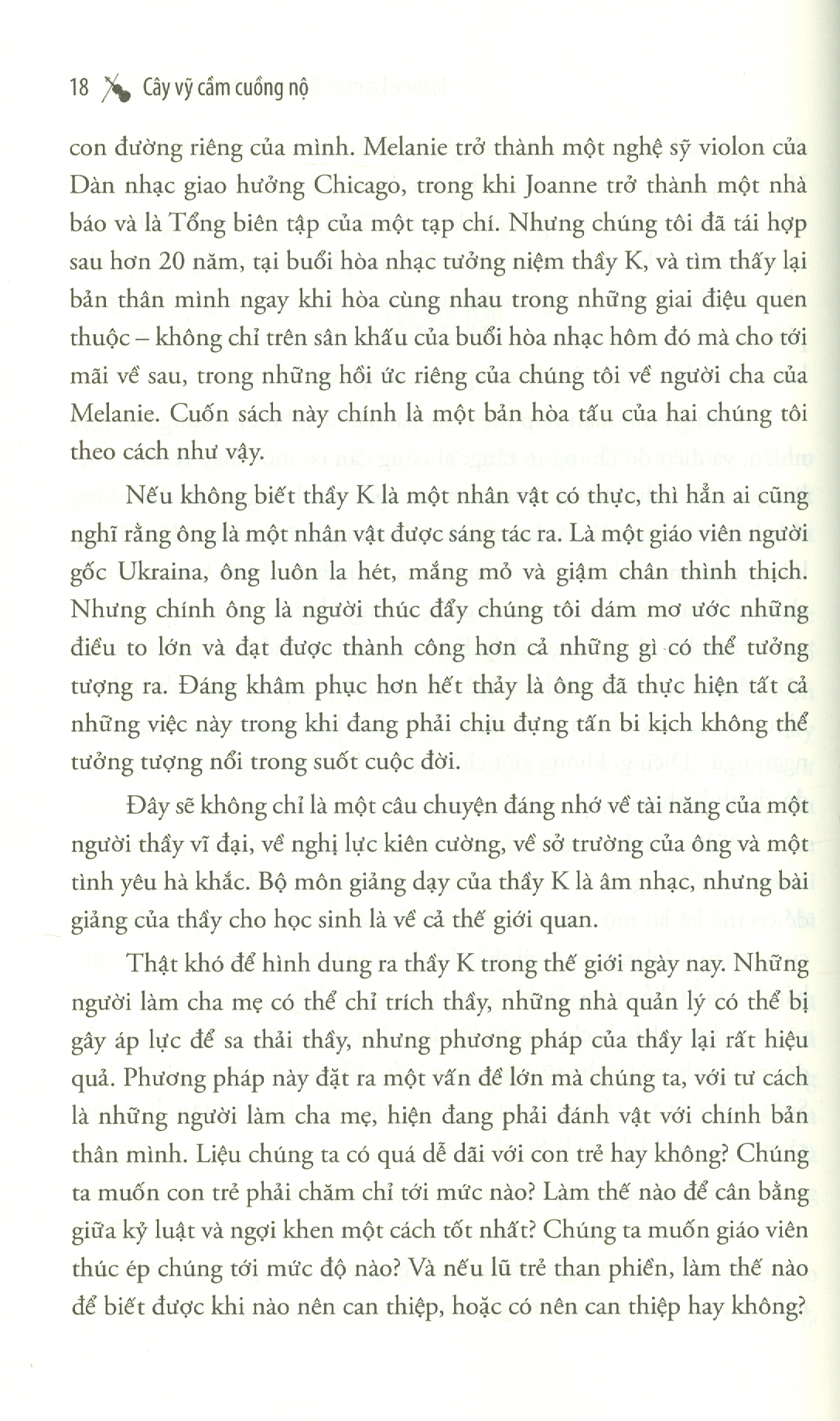 Đó thực sự là một điều kỳ lạ. Trong khi thầy K đang toát mồ hôi, phun nước bọt phì phì và giậm chân trên bục chỉ huy, tôi thấy mình như tan biến vào âm nhạc với cảm giác tràn trề hạnh phúc. Những đứa chơi viola phía trước đang lắc lư theo nhịp. Xung quanh tôi, những đứa khác cũng đang làm như vậy. Thầy K đã thực hiện được một điều bất khả thi: khiến cho chúng tôi trở nên giỏi hơn cả khả năng của mình. Thật là một cảm giác phi thường, khi ta nhận ra rằng mình đã vượt qua được giới hạn của bản thân. Có thể thầy K hiểu rõ điều này. Còn chúng tôi chỉ là những người thực hiện.