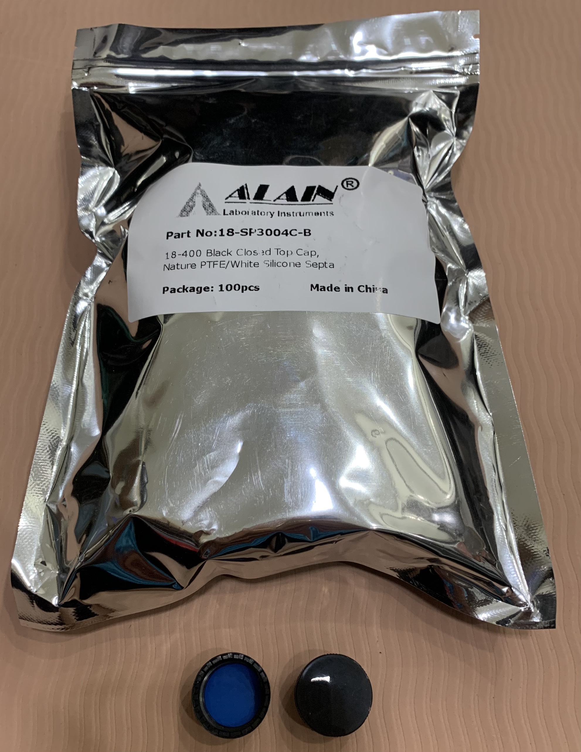 - 10ML-18-V1001C & 18-SP3004C-B Chai thủy tinh 10ml trắng 22*52mm + nắp vặn đen đệm septa ptfe/silicon kín, hộp 100 cái.