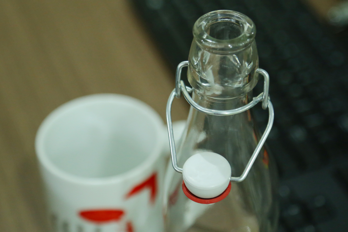 - Nắp cài dạng nút có roong cao su giúp giữ chặt vào miệng chai. Thanh kim loại trên miệng chai như cái khóa chắc chắn, cài kín hơi tuyệt đối. Bạn cũng có thể xả khí trong chai dễ dàng khi đóng mở nắp chai.