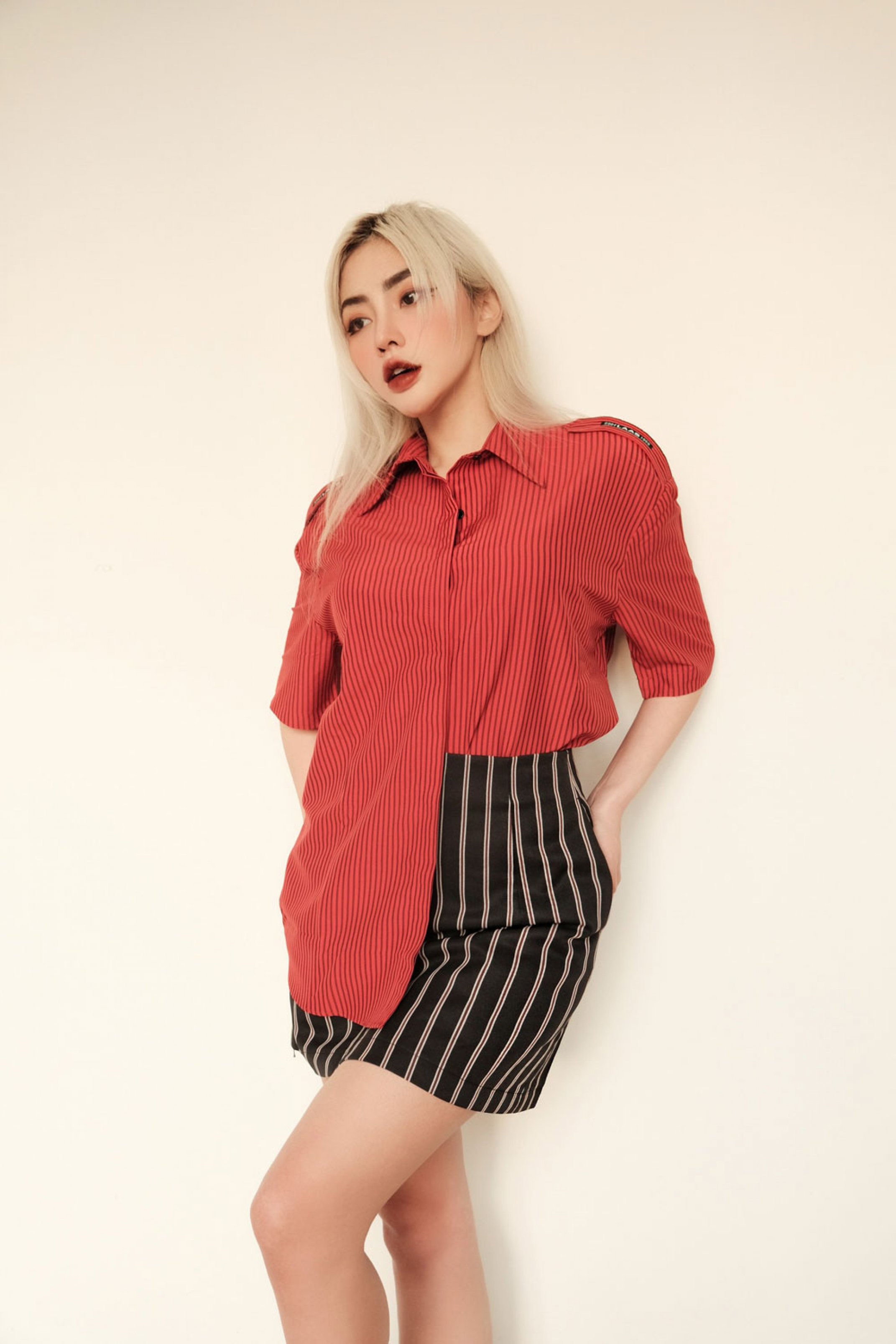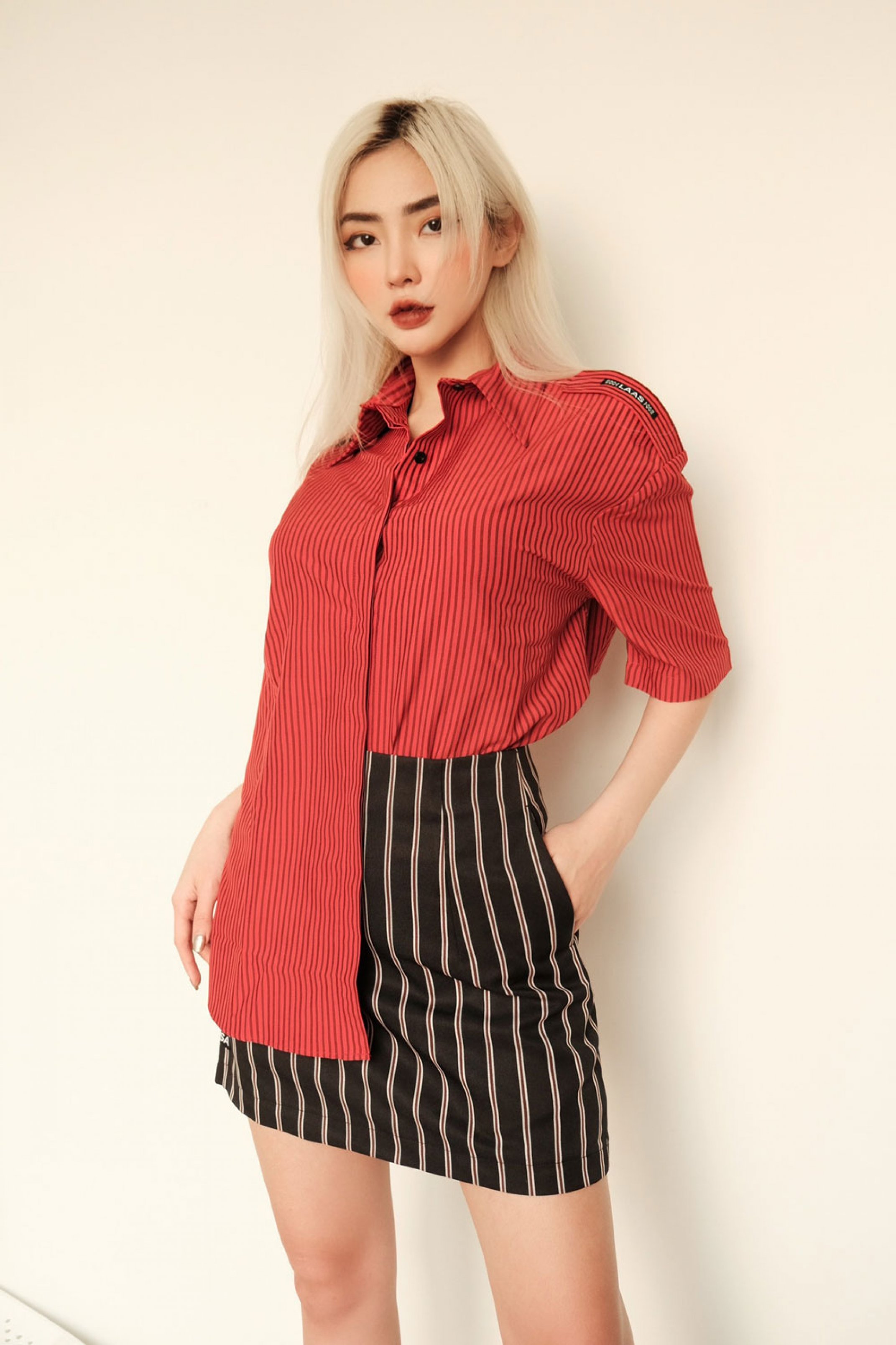 CHI TIẾT SẢN PHẨM - Sản phẩm : Chân váy dáng ngắn form chữ A nơ cột trước Slay Miều Est.2013 - Chất liệu : Lụa Mango Gân - Màu sắc : TRẮNG / ĐỎ