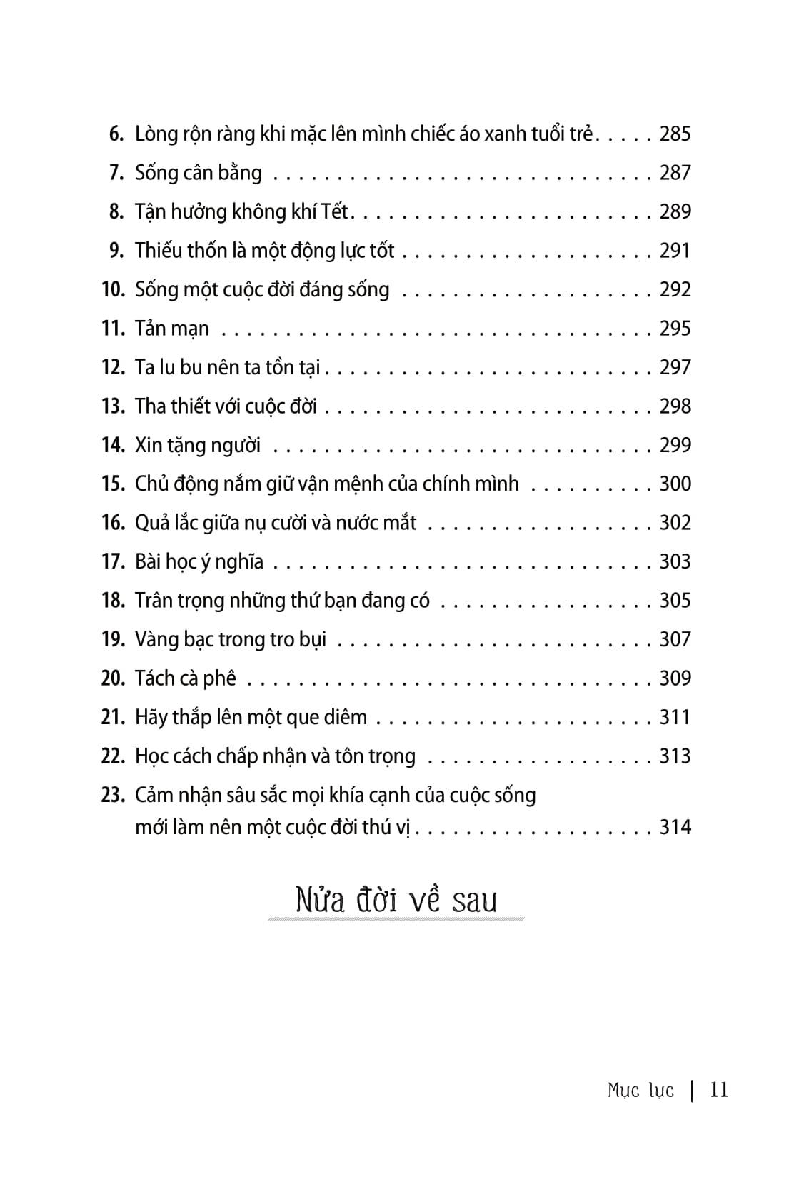 Quyển sách gồm 4 phần chính: Chiêm nghiệm để thấu đời, hiểu người và ngẫm lại chính m.ình (Ngẫm); Học hỏi người đi trước và rút ra những bài học sâu sắc trên đường đời (Học người); Trui rèn bản thân khi đã “ngẫm” và “học”, không phải để ganh đua, mà để trở thành phiên bản tốt nhất của chính m.ình. Và rồi, ta càng nỗ lực hơn để hoàn thiện bản thân, cuộc đời càng tha thiết yêu ta như cách ta trân trọng từng khoảnh khắc, từng hạnh phúc nhỏ nhặt của cuộc sống. (Cảm)