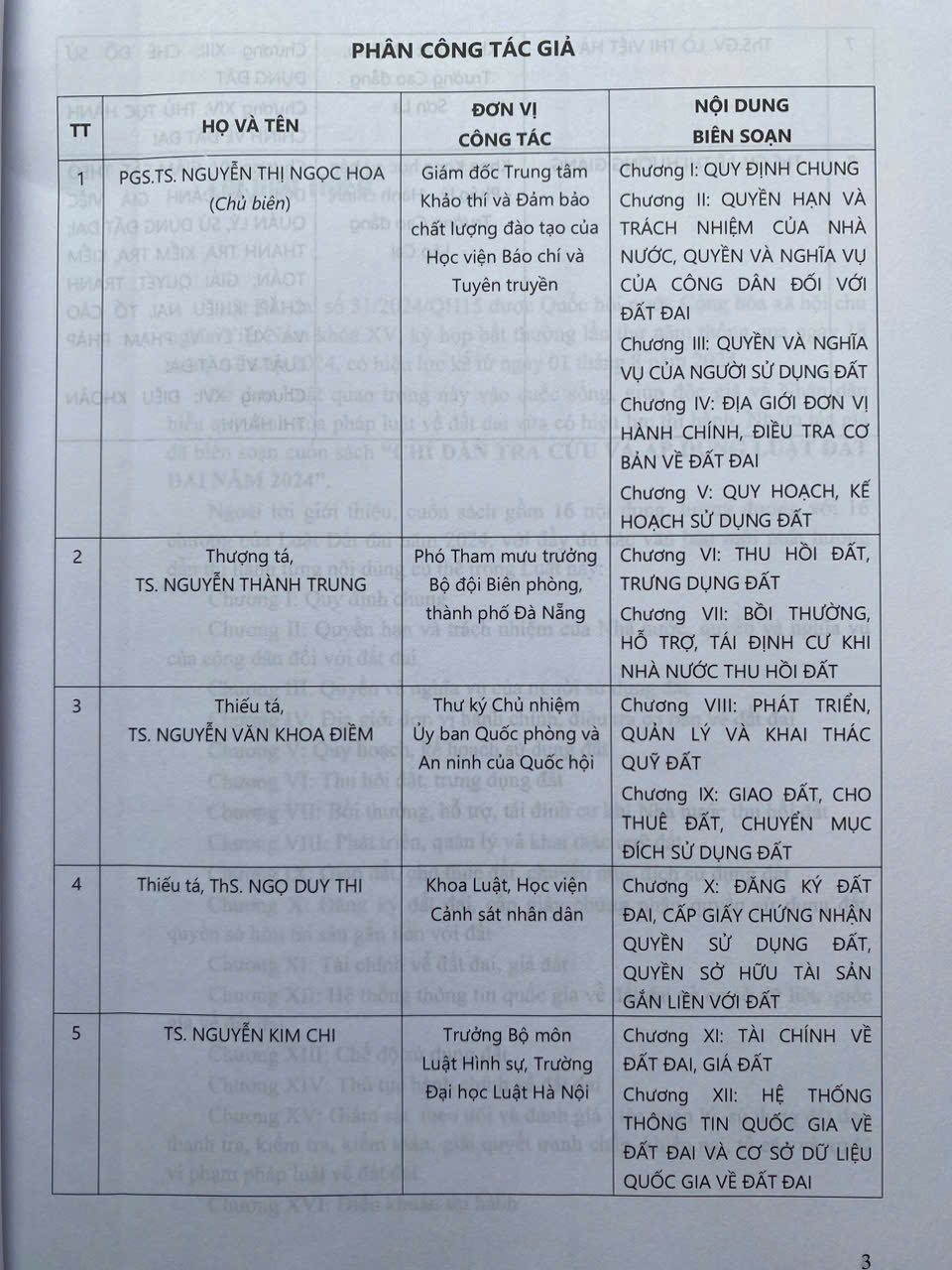 LUẬT ĐẤT ĐAI NĂM 2024 VÀ ÁN LỆ GIẢI QUYẾT VỤ ÁN, VỤ VIỆC VỀ ĐẤT ĐAI TRONG THỰC TIỄN XÉT XỬ (Sách chuyên khảo) Tác giả : PGS.TS Nguyễn Thị Ngọc Hoa (Chủ Biên)