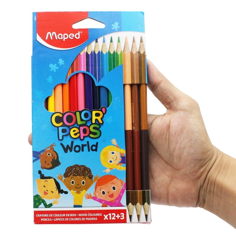 Chì Màu Maped Color'Peps 12 Màu + 3 Duo 832071 - Chì màu Maped thương hiệu của Pháp độ an toàn cao, chất lượng màu sắc chuẩn, độ bền màu cao. - Sản phẩm phù