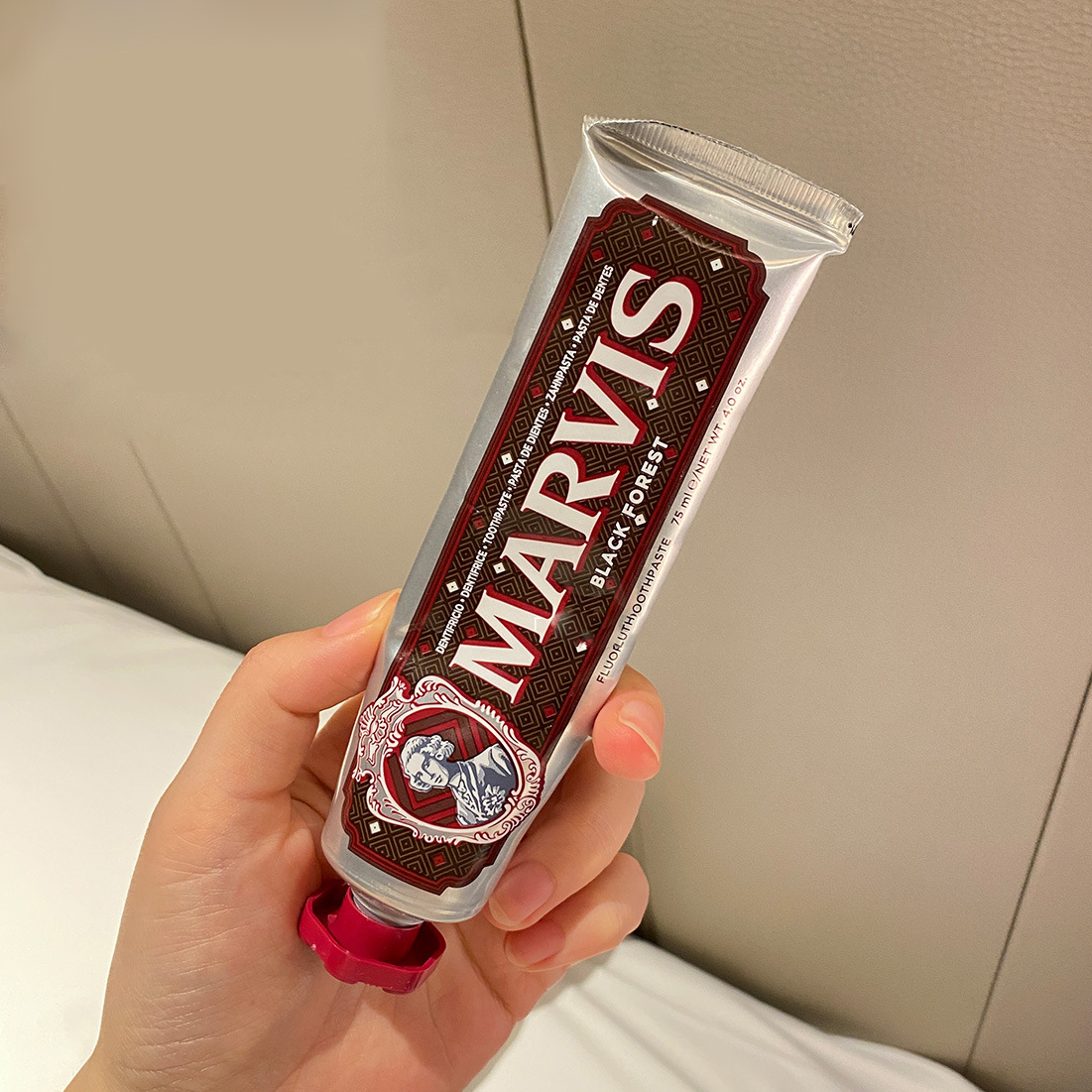 - Cho một ít kem đánh răng Marvis ra bàn chải đánh răng của bạn