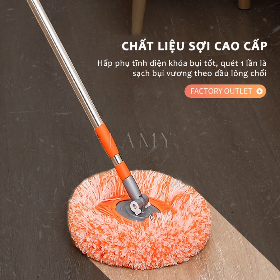 -Chổi quét bụi trần nhà đa năng dài 2M8 , lông chổi mềm mịn giúp hút ,cuốn giữ bụi bẩn, đầu chổi có thể gập 90 độ hoặc vặn xoắn ,cán chổi bằng inox có