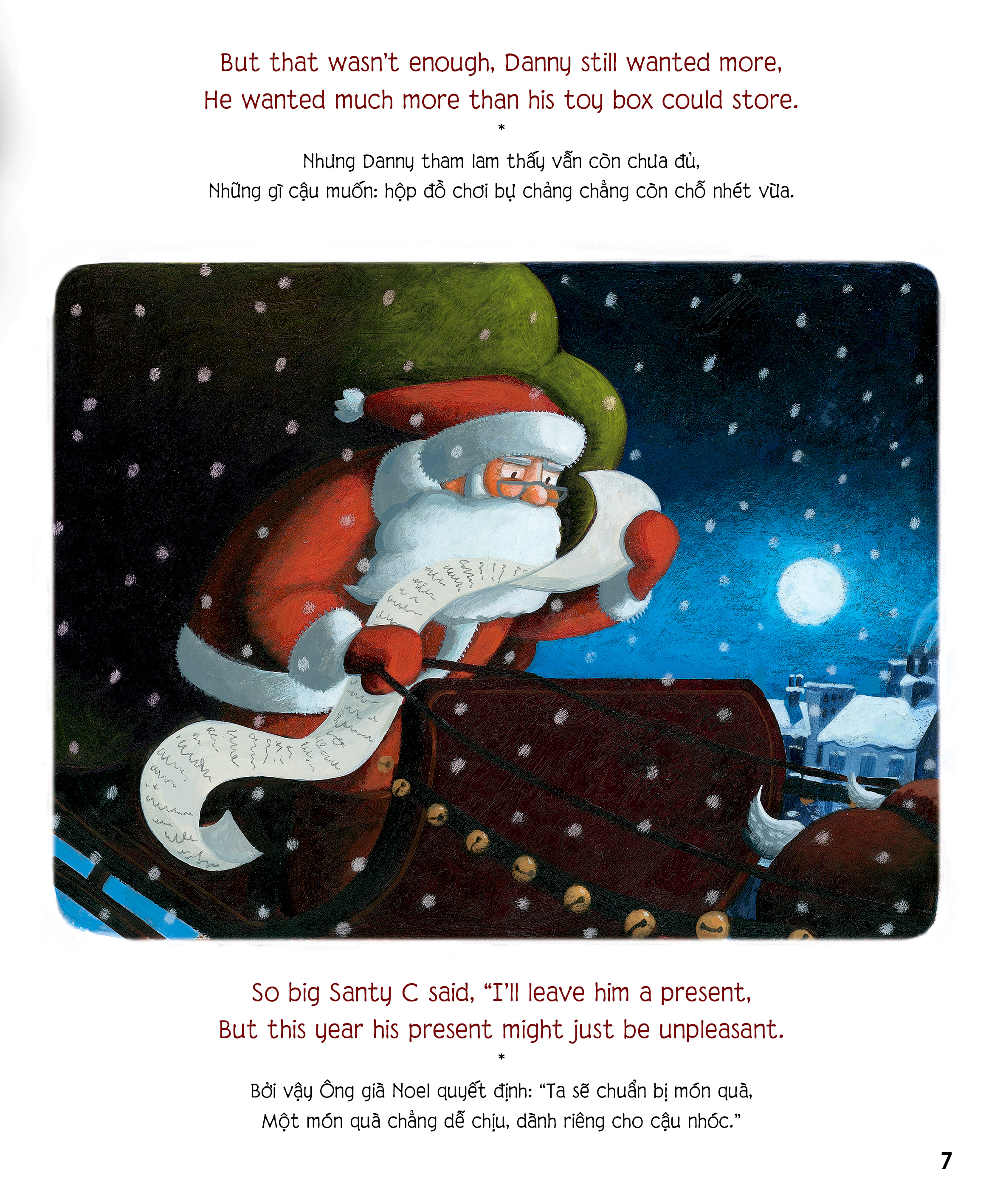 Sách - Chú khủng long tham ăn - Giải cứu Giáng sinh - Bài học về thói tham lam - Phiên bản song ngữ Anh - Việt