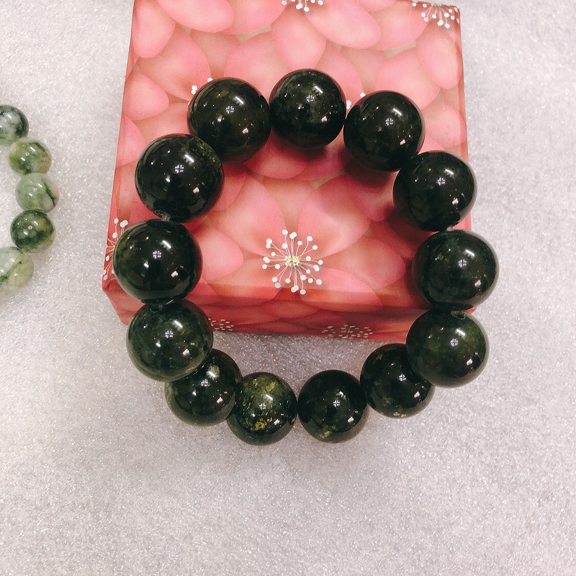 1.Vòng tay: ngọc serpentione một trăm phần trăm từ đá thật đá tự niên của VN chế tác thủ công tại Yen Bai 2.Màu xanh lá đậm, bóng láng như hình thích hợp nhất cho