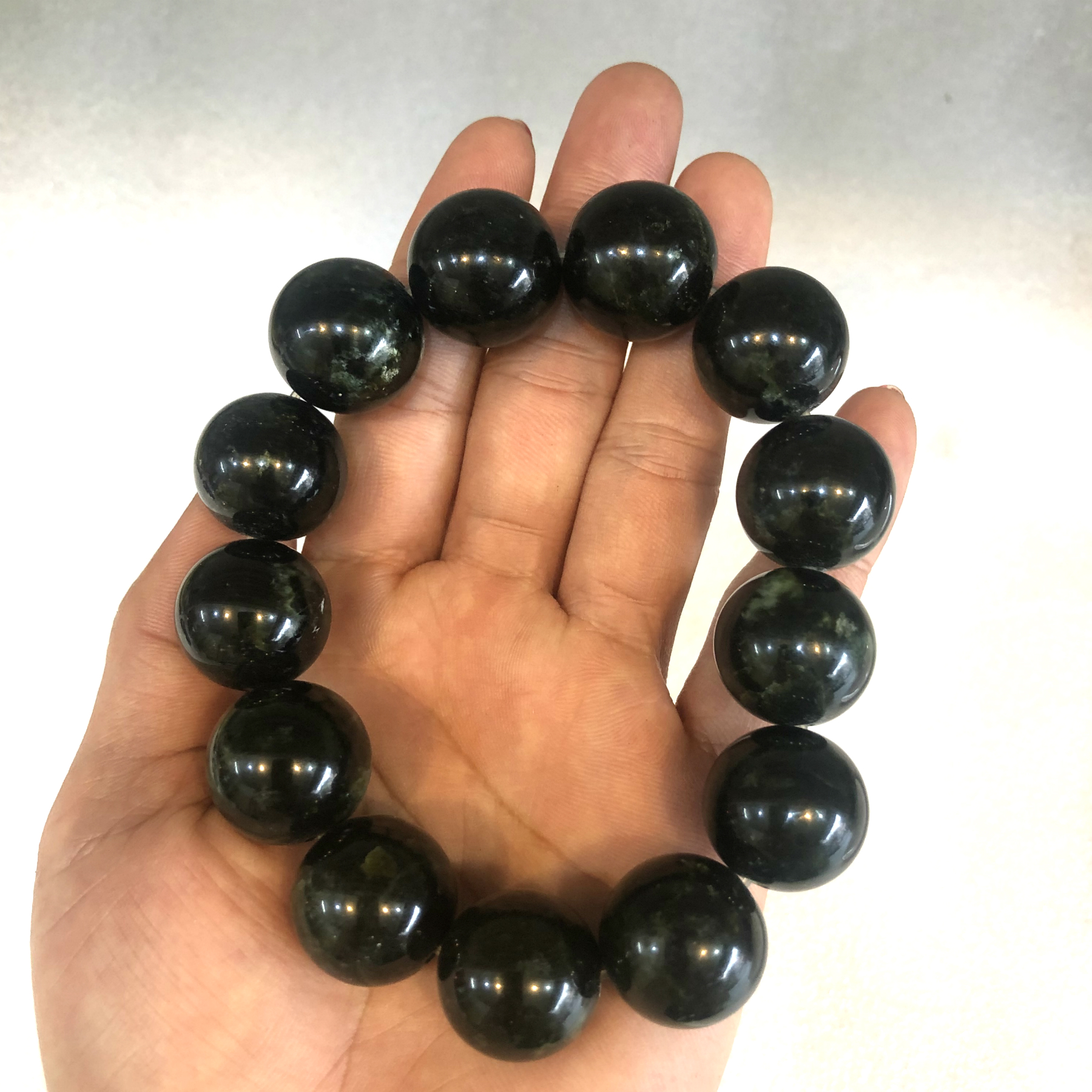 Vòng tay ngọc Serpentine 100% đá tự nhiên không qua xử lý, khai thác và chế tác tại Việt Nam. Màu: xanh đen đậm gần như màu đen, xanh ô liu , xanh pha trắng