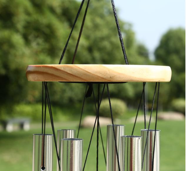 Chất liệu : giá treo gỗ và thanh nhôm - gồm 6 thanh kim loại nhôm Chiều dài đường kính treo 10cm, thanh chuông 30 đến 40 cm , chiều dài cả chuông 1m2 (có thể chỉnh