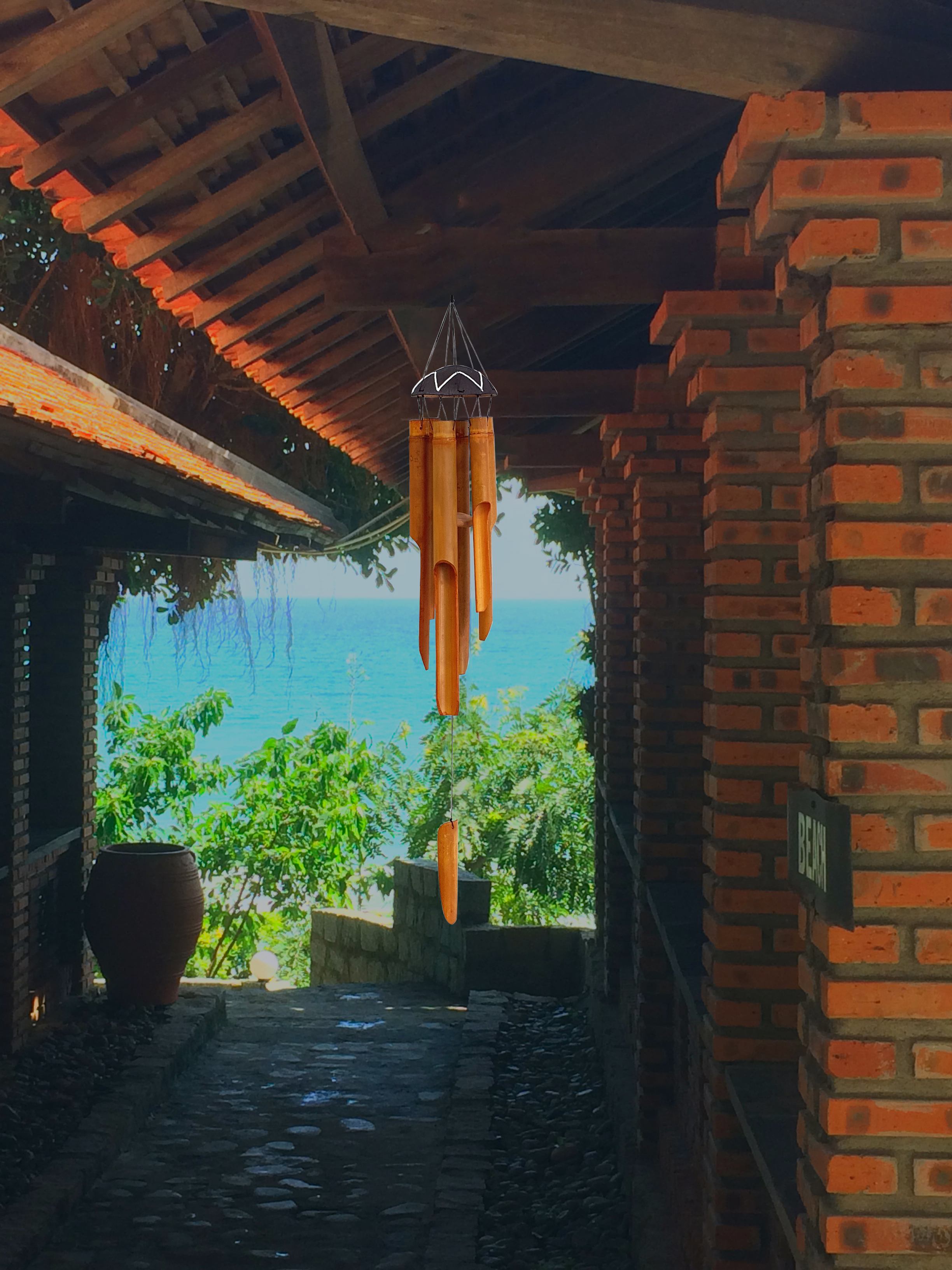 - Chuông gió được làm bằng các ống tre, được làm thủ công với kiểu dáng đơn giản, đẹp mắt; dưới bàn tay của nghệ nhân nó được biến tấu với các âm điệu khác