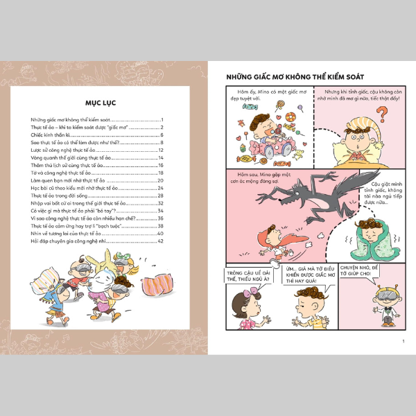“Công nghệ thực tế ảo” là một trong những khái niệm khá quen thuộc trong những năm gần đây. Sản phẩm cộng nghệ này thậm chí còn được nhiều người mệnh danh là công cụ biến “giấc mơ” thành “hiện thực”. Vậy “thực tế ảo” thực sự là gì? Vì sao thực tế ảo có thể giúp chúng ta kiểm soát “giấc mơ”? Tương lai của thực tế ảo sẽ ra sao? Hãy cùng khám phá những bí ẩn khoa học của thực tế ảo thông qua những mẩu truyện tranh nhẹ nhàng trong Chuyên Gia Nhí Khám Phá Công Nghệ Mới – Thực Tế Ảo nhé!