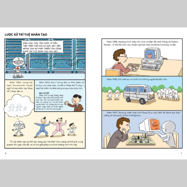 Trong thời hiện đại, ai ai cũng từng nghe đến “trí tuệ nhân tạo” (AI - Artificial Intelligence). Đây là ngành khoa học nghiên cứu cách thức mô phỏng và mở rộng giới hạn trí thông minh của con người. Nói ngắn gọn hơn, trí tuệ nhân tạo tìm cách khiến máy móc có tư duy như con người. Vậy trí tuệ nhân tạo có thể giúp máy móc suy nghĩ như con người hay không? Trí tuệ nhân tạo được ứng dụng trong những lĩnh vực nào? Liệu trí tuệ nhân tạo có thể giúp con người trở nên bất tử? Hãy cùng khám phá những bí ẩn khoa học của trí tuệ nhân tạo thông qua những mẩu truyện tranh nhẹ nhàng trong Chuyên Gia Nhí Khám Phá Công Nghệ Mới – Thực Tế Ảo nhé!
