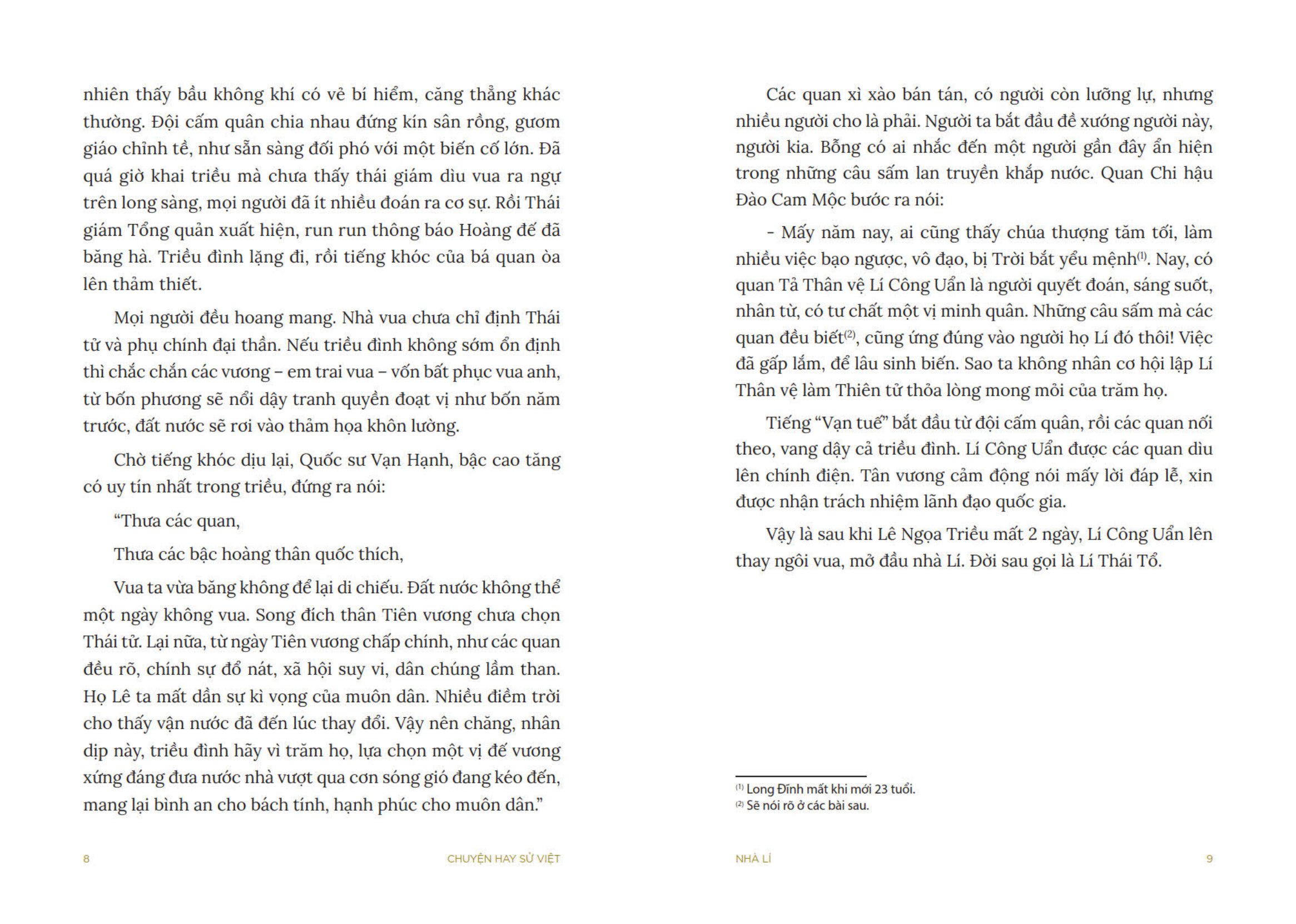 Nhà Lí - Xây Nền Văn Hiến Quốc Gia đưa chúng ta đến gặp tám vị vua (mà cũng có thể là chín) nhà Lí, với các sự kiện trọng đại như việc dời đô về Thăng Long, đặt tên nước là Đại Việt hay chiến thắng quân Tống trên sông Như Nguyệt.