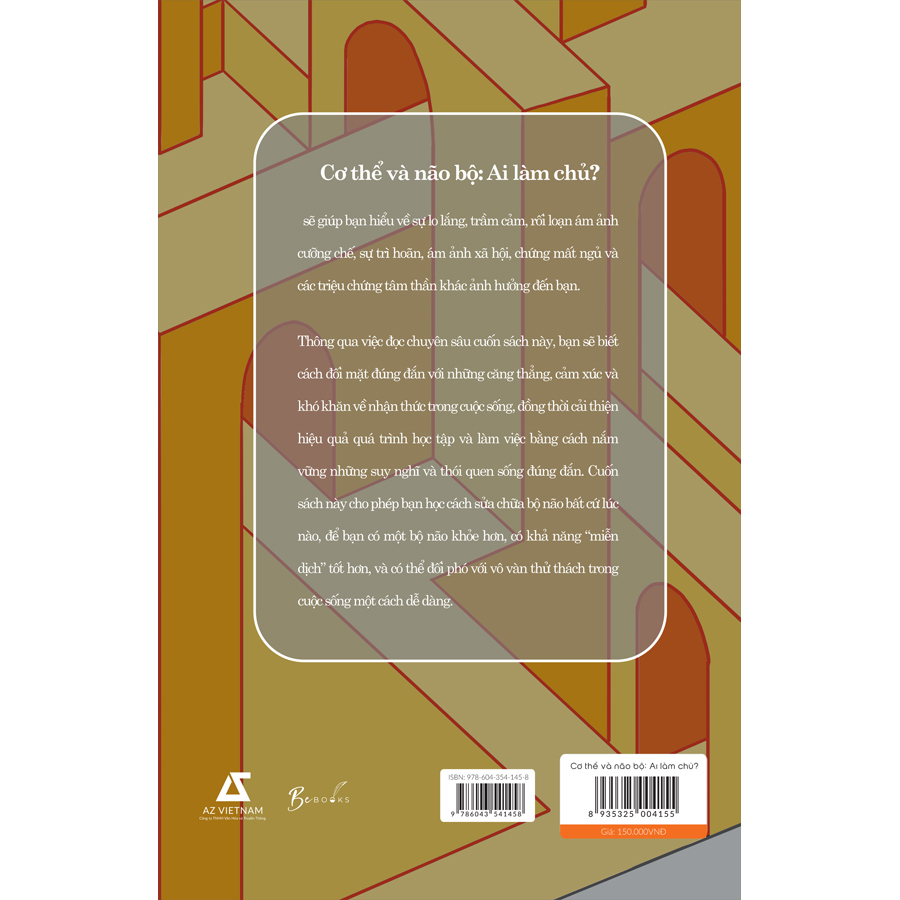 CƠ THỂ VÀ NÃO BỘ: AI LÀM CHỦ? Không ai có thể sở hữu bộ não hoàn hảo không khuyết điểm, không ai có bộ não hoàn toàn “bình thường”. Não bộ của mỗi người hoặc ít hoặc nhiều đều có chút “không hoàn hảo” hoặc “bất thường”. Sự “bất thường” này có lúc ở phương diện cảm xúc, có lúc ở phương diện nhận thức, chúng có thể ảnh hưởng đến công việc và hoạt động học tập hàng ngày của bạn, hoặc ảnh hưởng đến cuộc sống và cách hành xử của bạn, hoặc ảnh hưởng đến việc kết bạn và các mối quan hệ thân thiết của bạn.  Sự bình thường hoàn hảo vô khuyết vốn là một mệnh đề sai, trong thế giới tự nhiên, không bình thường mới là bình thường, đồng nghĩa với việc trong chúng ta ắt hẳn ai cũng từng gặp phải những vấn đề liên đến não bộ: Đơn giản có thể như việc bạn quên mình đã khóa cửa hay chưa, đọc sách thường nhảy hàng, nghe người khác nói chuyện thường mất tập trung, vắt hết óc để làm việc vẫn không nghĩ ra được ý tưởng nào hay ho, Hoặc nghiêm trọng hơn là những triệu chứng tâm thần, chẳng hạn luôn cảm thấy thế giới u ám; nhiều khi đứng ngồi không yên, bất an, lo sợ có chuyện chẳng lành xảy ra; có khi thì cực kì hưng phấn cảm thấy chuyện gì mình cũng có thể làm được, nhưng có lúc lại thấy bản thân thật vô dụng, rất áy náy khi là một con người, Vậy nếu như bạn muốn khắc phục tình trạng trên nhưng lại không biết não bộ bình thường hoạt động như thế nào, thì lấy gì mà tu sửa não bộ đây?  Cuốn sách: “Cơ thể và não bộ: Ai làm chủ?” sẽ giải đáp cho đa số các tò mò, nghi hoặc và lo lắng về não bộ của bản thân bạn để có một bộ não khỏe với sức “đề kháng” tốt hơn.  Mỗi chương sẽ tập trung vào một vấn đề thần kinh của não bộ. Ở nửa đầu sẽ được minh họa bởi các thí nghiệm khoa học thú vị, những trường hợp điển hình và những mẩu chuyện nhỏ trong cuộc sống để giới thiệu tường tận biểu hiện đặc điểm của não bộ cùng với cơ chế phía sau của nó. Nửa chương sau, sẽ bao gồm các phương pháp tự cải thiện ứng với các đặc điểm này. Từ đó cung cấp cho bạn những kiến thức chuyên sâu về não bộ một cách dễ hiểu nhất. Hy vọng cuốn sách sẽ thỏa mãn sự tò mò về não bộ cũng như học cách sửa chữa nó bất kỳ lúc nào!