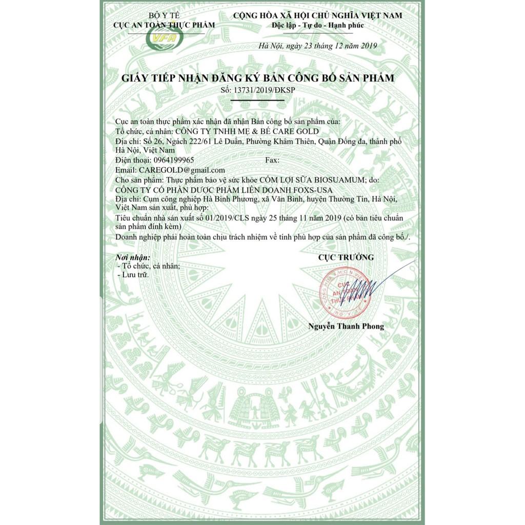 5 gói x 3 g Cốm lợi sữa biosuamum - Sữa về tràn trề sau 3-5 ngày. Cốm lợi sữa Biosuamum là dòng tăng tiết lợi sữa được khuyên dùng CÔNG DỤNG: - Tăng chất