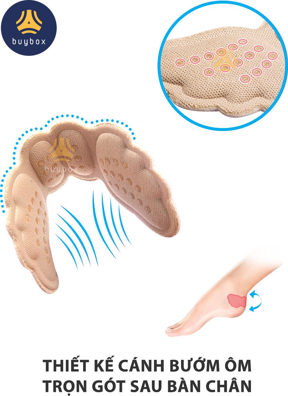 Giày cao gót thật quyến rũ và cũng thật "Đau Đớn" đối với đôi bàn chân. Không ít trường hợp bị trầy da chảy máu, chai sần da gót sau, thậm chí để lại sẹo. Từ nay không còn phải lo lắng nữa vì đã có "Combp 2 cặp Lót gót giày 4D hình cánh bướm có mặt gai silicone chống trầy rách da và chống tuột gót chân - buybox - BBPK70_2" bảo vệ tuyệt đối gót chân của bạn. CÔNG DỤNG NỔI BẬT