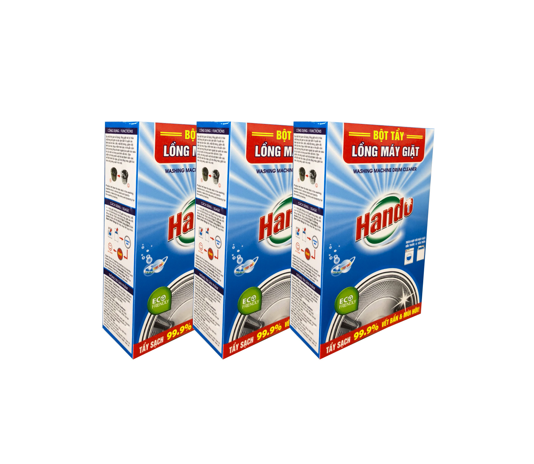 Thông tin sản phẩm Tên sản phẩm : Tẩy lồng máy giặt Hando Hướng dẫn sử dụng : Cho 2 đến 3 gói nhỏ bột vào lượng nước khoảng 1/6 thùng giặt, sau đó ngâm