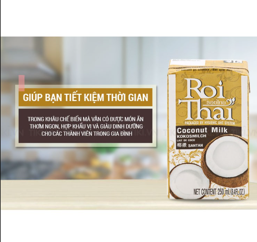 COMBO 2 HỘP NƯỚC CỐT DỪA ROI THAI 250ML Thành phần dinh dưỡng Sản phẩm giàu khoáng chất như Đồng, Sắt, Selen, Canxi, Magie và Photpho, cũng như các Vitamin C, E, B1, B3, B5 và B6, Axit Lauric giúp tăng cường sức đề kháng, thanh nhiệt, làm đẹp da, tốt cho hệ tim mạch, Công dụng