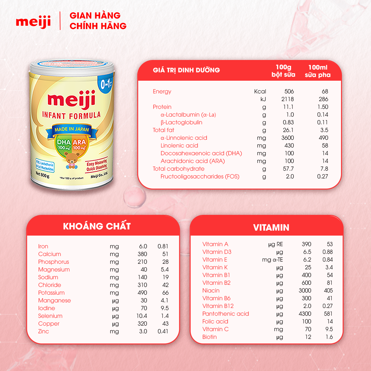 Sữa Meiji Infant Formula 800g nhập khẩu cho trẻ 0-1 tuổi - Sữa cho bé yêu