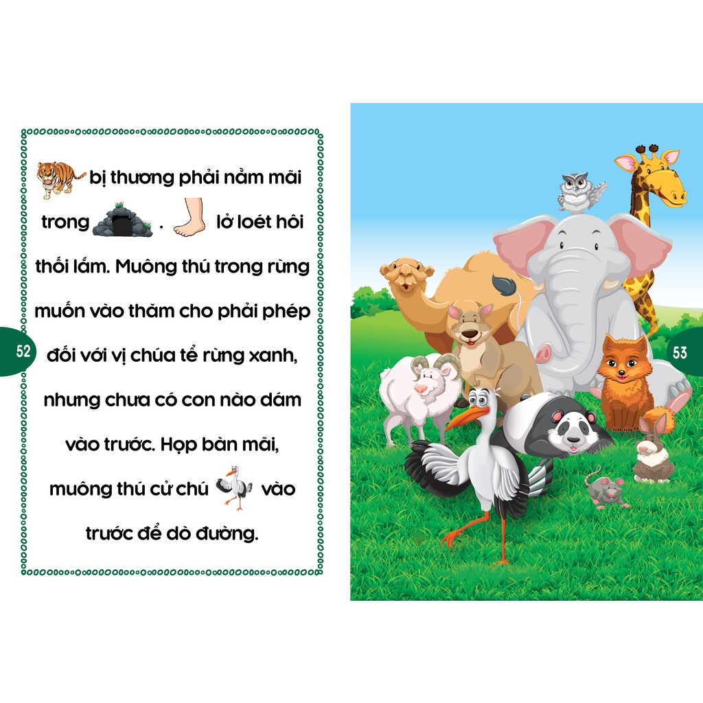 Bộ Sách Phát Triển Tư Duy Và Ngôn Ngữ Cho Bé - Truyện Đọc Bằng Hình Ảnh - Những Câu Chuyện Ngụ Ngôn Việt Nam đặc sắc Ích lợi của hoạt động đọc truyện, đọc sách cùng trẻ thì dường như phụ huynh nào cũng biết đến. Nhưng một trong những vấn đề nan giải mà phụ huynh thường than phiền là không biết làm cách nào để khiến khoảng thời gian đọc truyện, đọc sách cùng trẻ trở nên thú vị hơn, sinh động hơn, khiến trẻ cảm thấy thu hút, say mê cùng việc đọc. Hơn nữa, mỗi trẻ có tư duy nhận thức, có nhịp tiếp nhận khác nhau, có cảm xúc thẩm mỹ khác nhau mà chỉ có phụ huynh ông bà cha mẹ gần gũi nhất là có thể hiểu rõ. Quyển sách này được thiết kế cho bé đọc truyện theo tư duy hình ảnh ,mỗi câu chuyện kết hợp với hình ảnh thay cho từ để bé đoán hình thành câu chuyện đọc hay cho bé. Đặc biệt cuối mỗi câu chuyện là Lời bàn ngắn gọn, dễ hiểu và mang tính gợi mở để các bé hiểu và tự suy nghĩ, rút ra bài học cho chính bản thân của bé Thông qua những mẫu truyện ngụ ngôn có một sức lôi cuốn mãnh liệt với trẻ nhỏ, đặc biệt là trong những năm tháng đầu đời và cha mẹ có thể dạy bé nhiều bài học bổ ích về cuộc sống trong quyển sách này, hỗ trợ phát triển rèn luyện tư duy logic, năng lực ngôn ngữ và hình thành các giá trị đạo đức cơ bản nhất từ rất sớm. Điều này thực sự sẽ xây dựng một nền tảng vững vàng cho sự trưởng thành của bé. Mời bạn tham khảo một số truyện ngụ ngôn