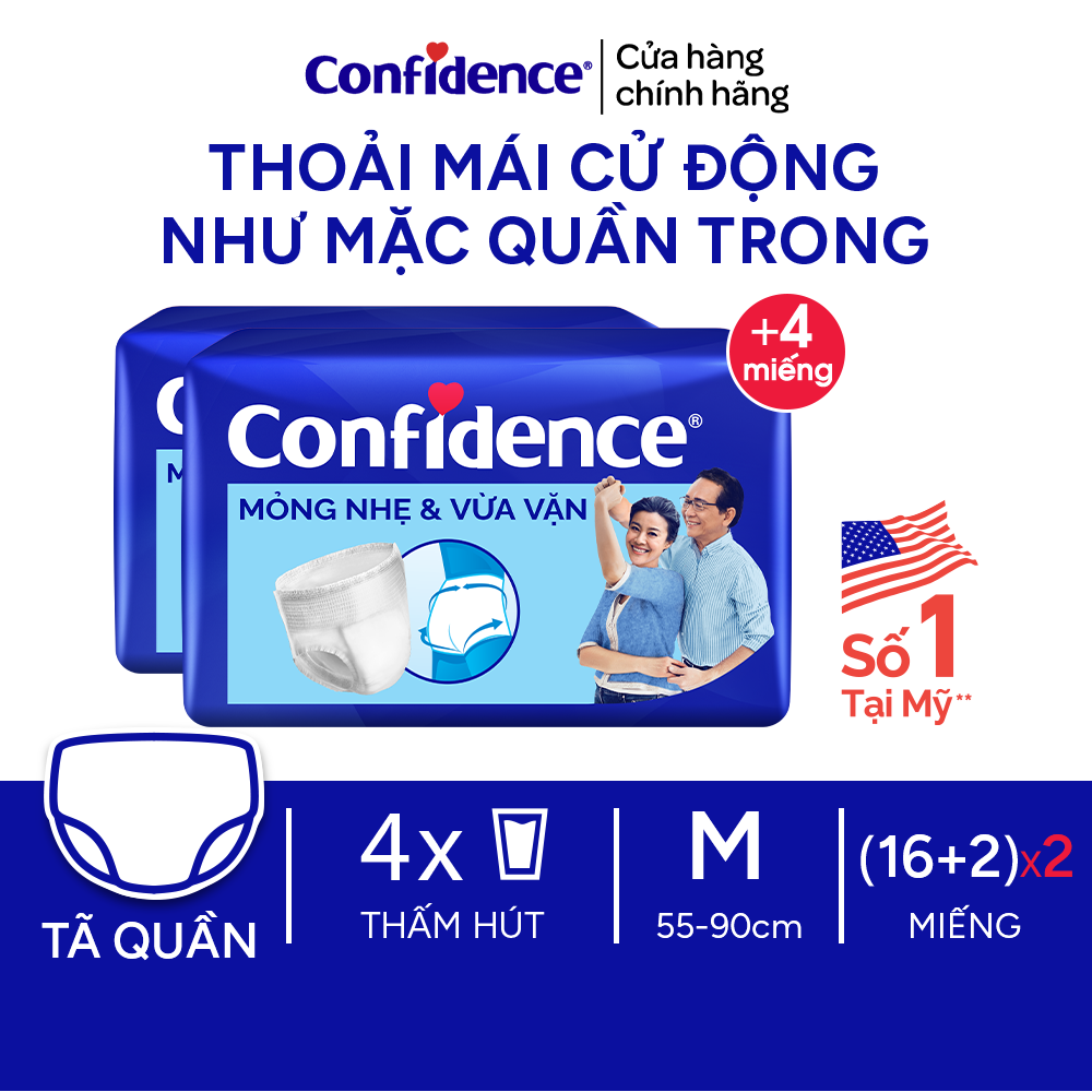 Tã quần người lớn Confidence Slim&Fit mỏng nhẹ vừa vặn size M gói 16+2 miếng Giới thiệu - Tã quần người lớn Confidence Slim&Fit mỏng nhẹ vừa vặn size M gói 16+2 miếng - an