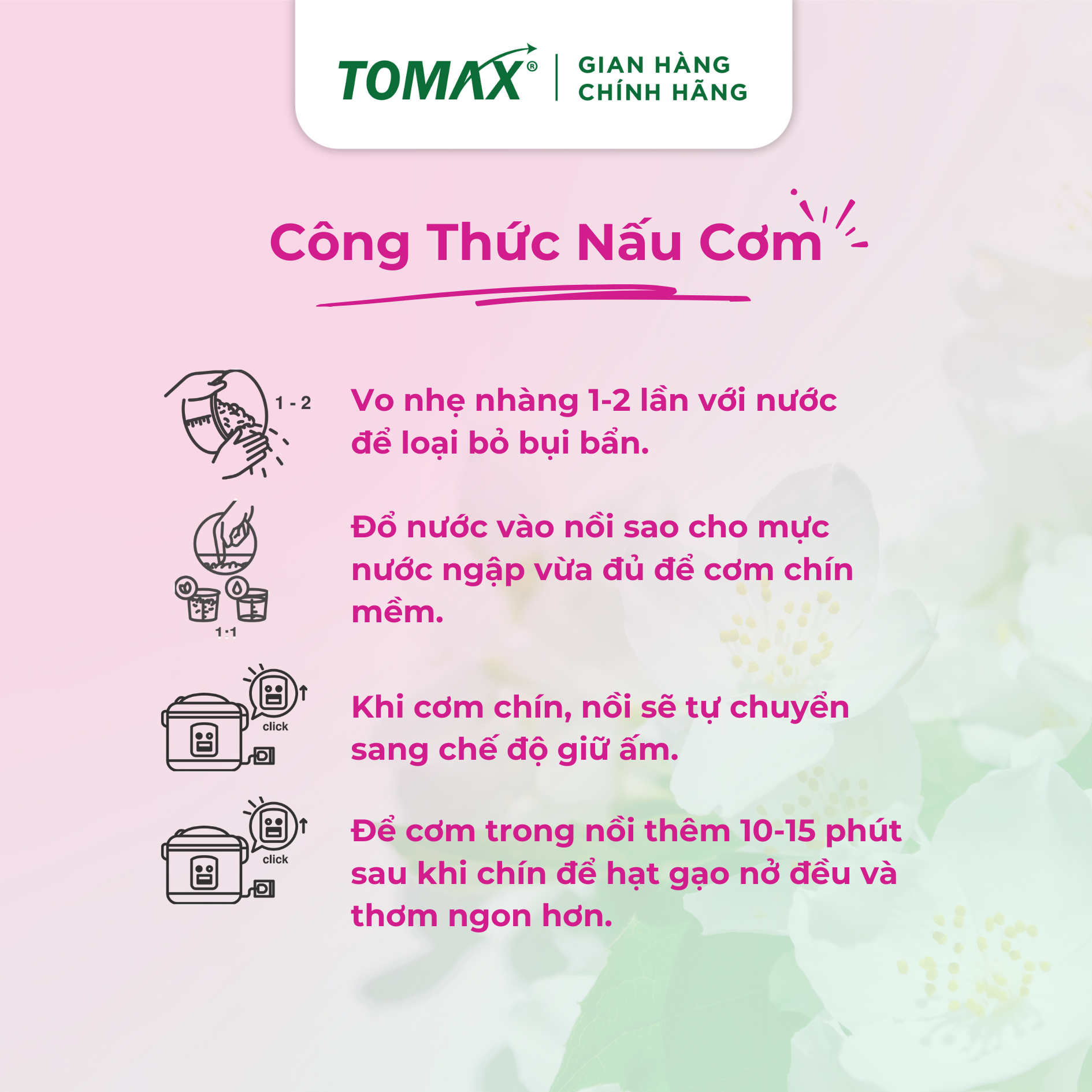 COMBO 3 TÚI 5KG GẠO ĐÀI THƠM Tomax - TƠI XỐP, DẺO THƠM, THƠM DỊU - TOMAX Gạo hữu cơ Đài Thơm Tomax 100% không có chất bảo quản, không có chất chống mọt, chống