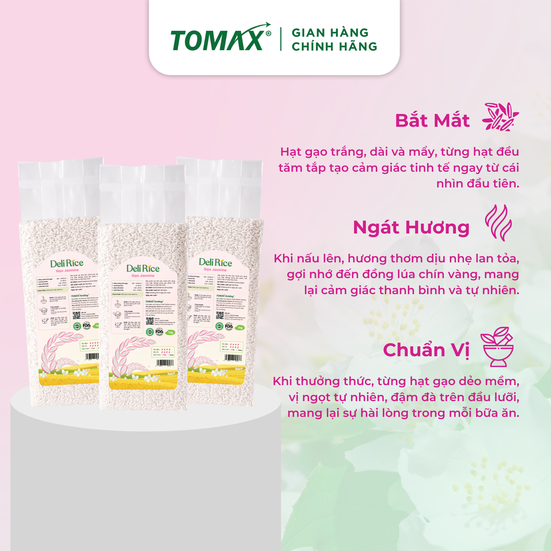 COMBO 2 TÚI 5KG GẠO ĐÀI THƠM DELI RICE - TƠI XỐP, DẺO THƠM, THƠM DỊU - TOMAX Gạo hữu cơ Đài Thơm Deli Rice 100% không có chất bảo quản, không có chất chống