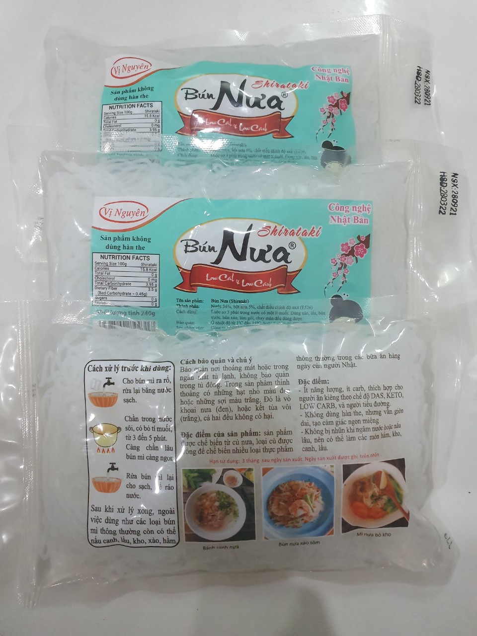 MIẾN NƯA VỊ NGUYÊN 240G - Xuất xứ: Việt Nam - Hạn sử dụng: 6 tháng (gói 240g) - Đóng gói: 240g/gói - Bảo quản: Nơi thoáng mát Những thực phẩm được làm từ bột Glucomanna