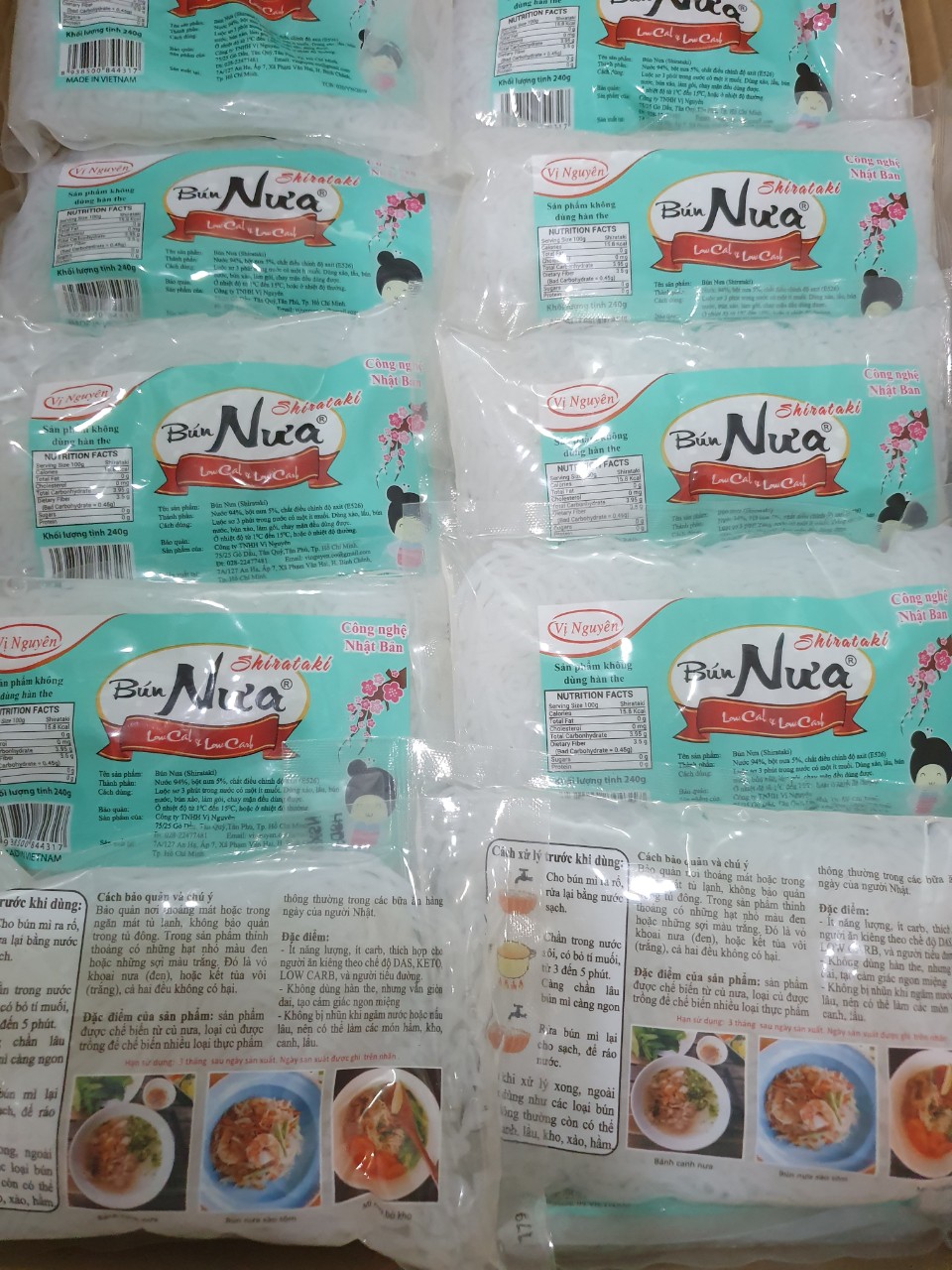 - Bảo quản: Nơi thoáng mát Những thực phẩm được làm từ bột Glucomanna có trong củ nưa, một chất xơ chứ không phải là tinh bột. Sản phẩm được sản xuất theo công nghệ Nhật Bản, không chất bảo quản. ️ THÀNH PHẦN: Bún nưa chiếm 97% chất xơ. Năng lượng 5-30kCal/100g ️ Cách sơ chế: mở hộp đổ bỏ nước muối ngâm, rửa qua bằng nước, thả vào nước sôi cho sôi lại 3-5′. Sau đó có thể chế biến đa dạng như bún miến bình thường như làm bún trộn, bún xào, hoặc bún nước, đặc biệt ăn lẩu với bún Shi cực chuẩn, vì đặc trưng của em nó là càng nấu lâu càng ngấm gia vị, đặc biệt là không hề trương hay nhũn, luôn luôn dai ngon. Bún có hàm lượng chất xơ rất cao, là loại củ có thành phần dinh dưỡng là 0 carb from sugar và gần như 0 kcal. phù hợp với mọi lứa tuổi, mọi chế độ ăn kiêng, kể cả DAS, Lowcarb.