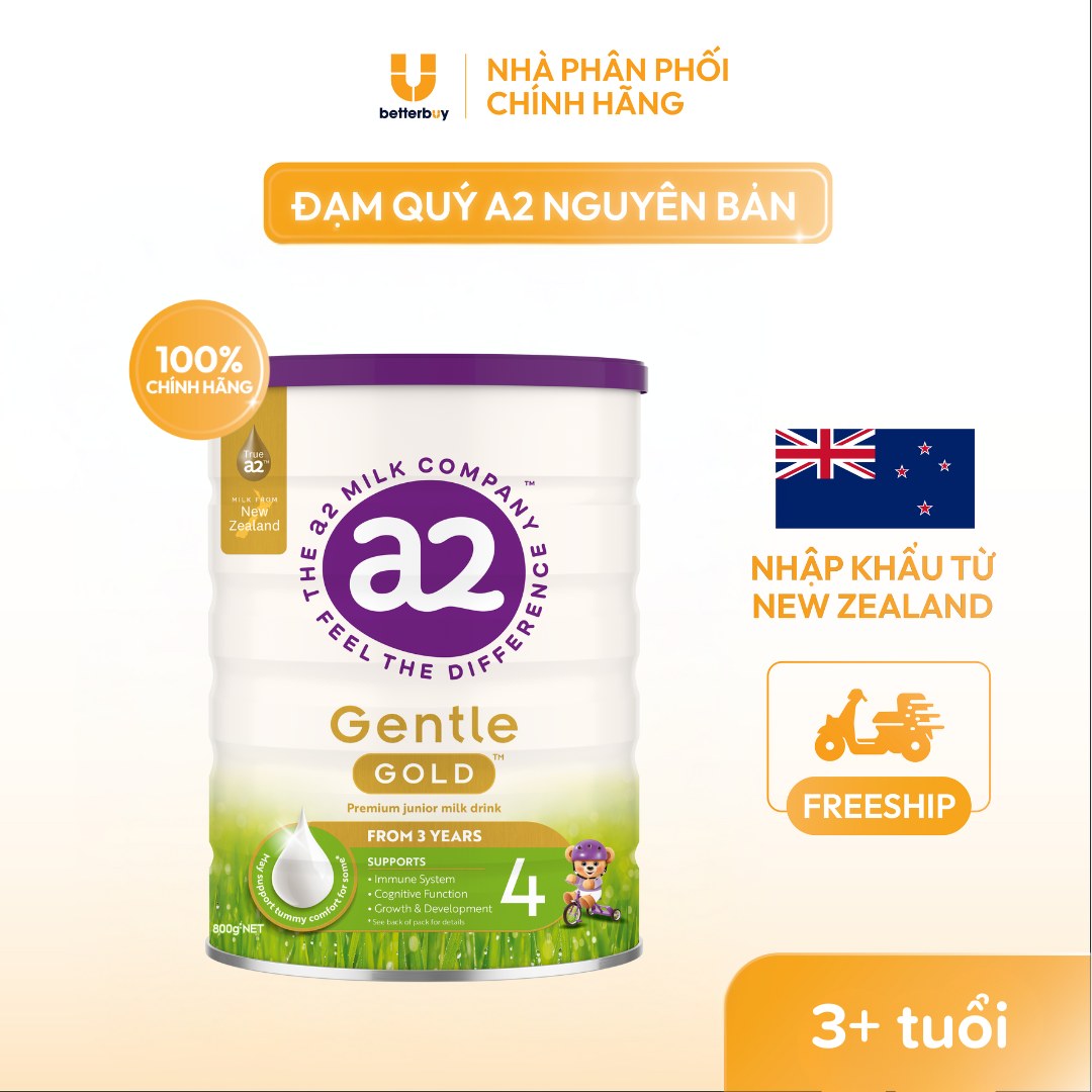 a2 Gentle Gold Premium - Sữa công thức nguyên kem nhập khẩu trực tiếp từ New Zealand, 100% đạm A2 chuyên hỗ trợ tiêu hóa, hấp thu và tăng cân hiệu quả cho trẻ