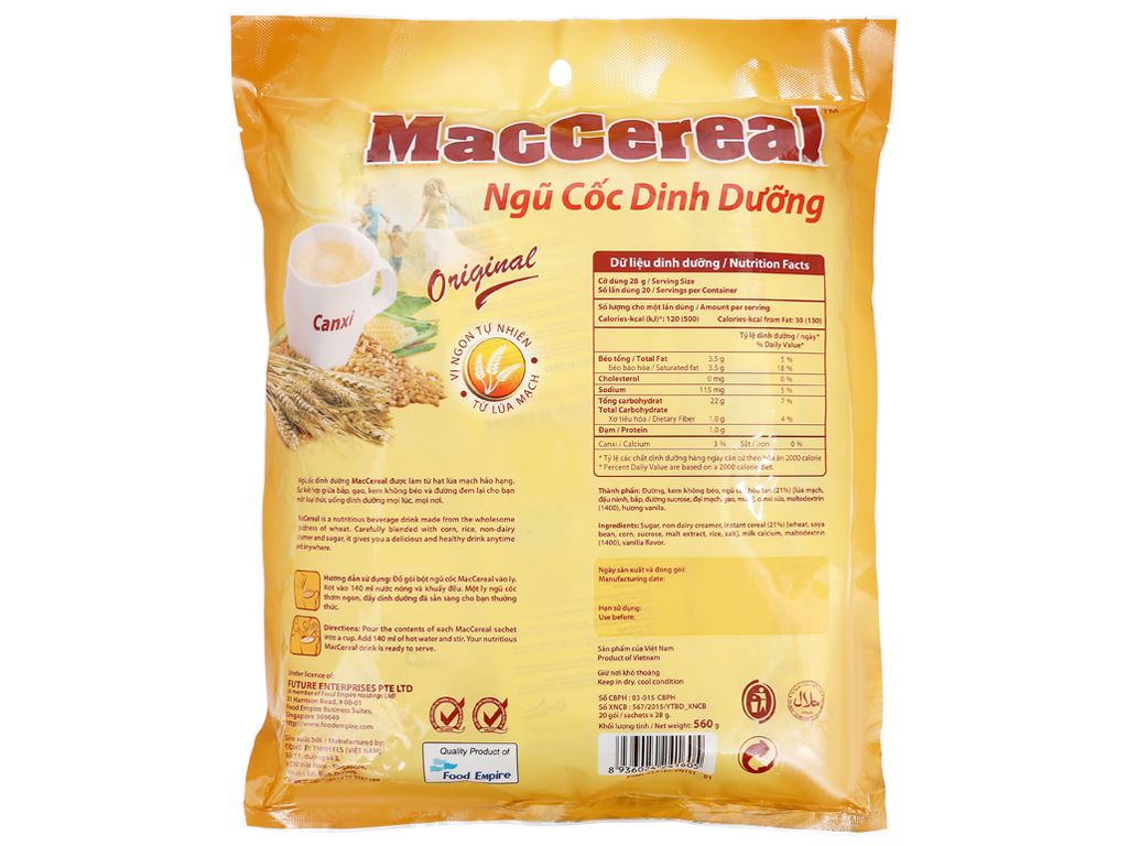 Combo 3 Túi Ngũ cốc dinh dưỡng MacCereal bịch 560g (20 gói x 28g) thơm ngon dễ uống tiện lợiCombo 3 Túi Ngũ cốc dinh dưỡng MacCereal bịch 560g (20 gói x 28g) thơm ngon dễ uống tiện lợiCombo 3 Túi Ngũ cốc dinh dưỡng MacCereal bịch 560g (20 gói x 28g) thơm ngon dễ uống tiện lợiCombo 3 Túi Ngũ cốc dinh dưỡng MacCereal bịch 560g (20 gói x 28g) thơm ngon dễ uống tiện lợi