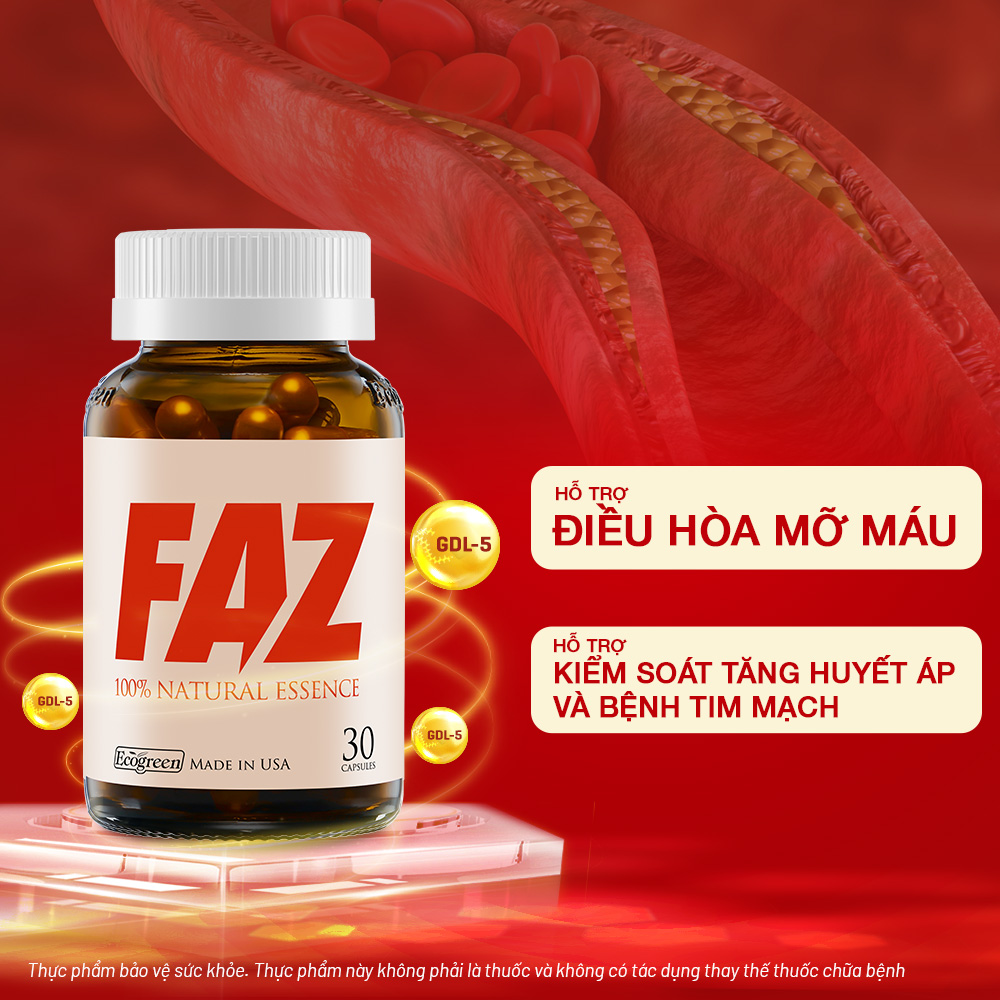 FAZ với thành phần Policosanol thiên nhiên có tác dụng hỗ trợ điều hòa hoạt động men HMG-CoA và tăng hoạt hóa receptor tế bào giúp hỗ trợ: