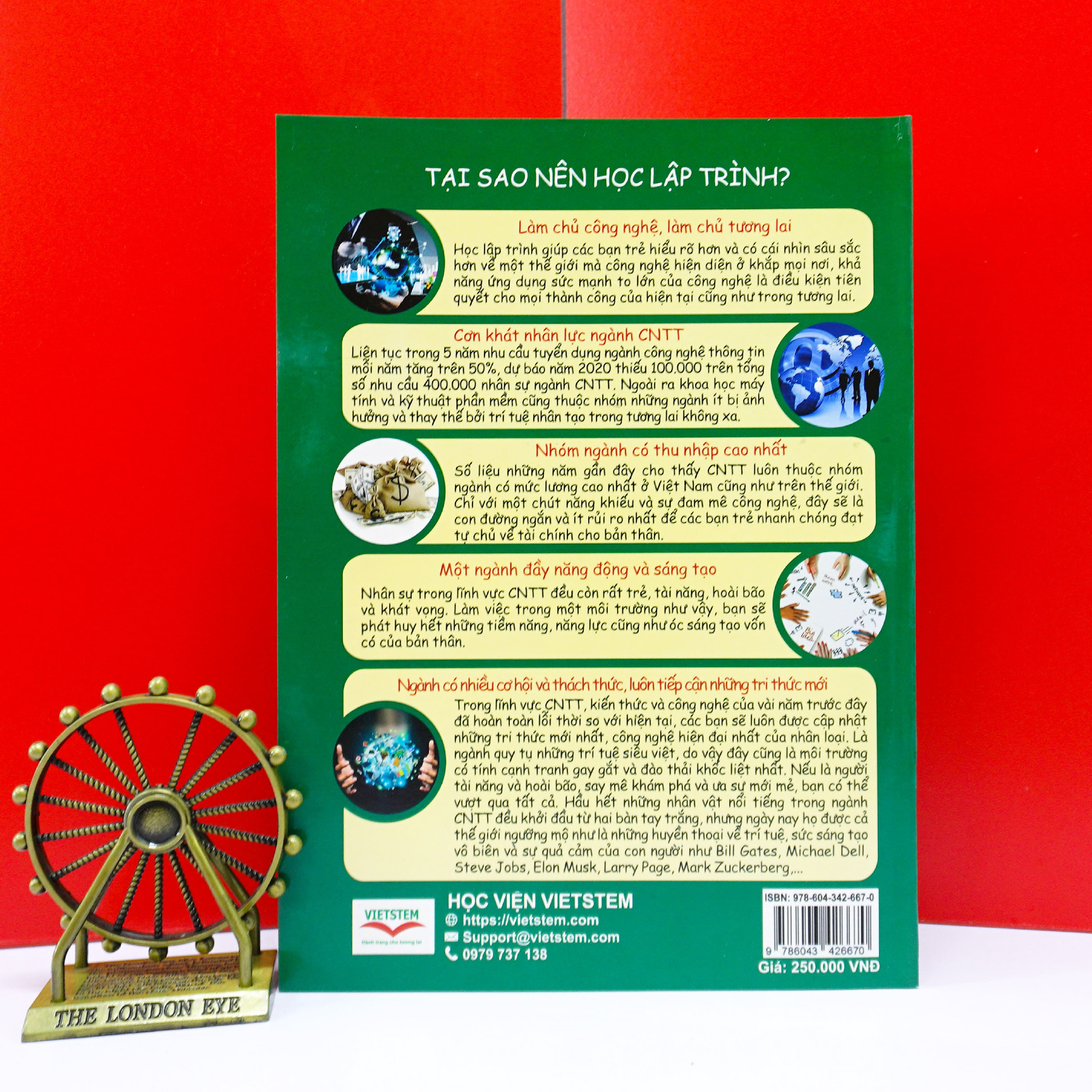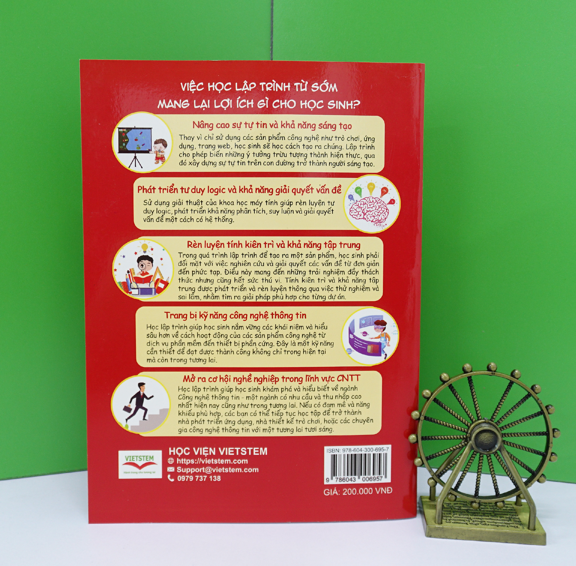 - Sách liên tục cập nhật theo phiên bản Scratch mới nhất vì vậy có thể thay đổi một phần tên sách theo phiên bản cập nhật, phần nội dung kiến thức không thay đổi. Mọi thắc mắc về các sản phẩm của VIETSTEM liên hệ qua Chat để được hỗ trợ và giải đáp.