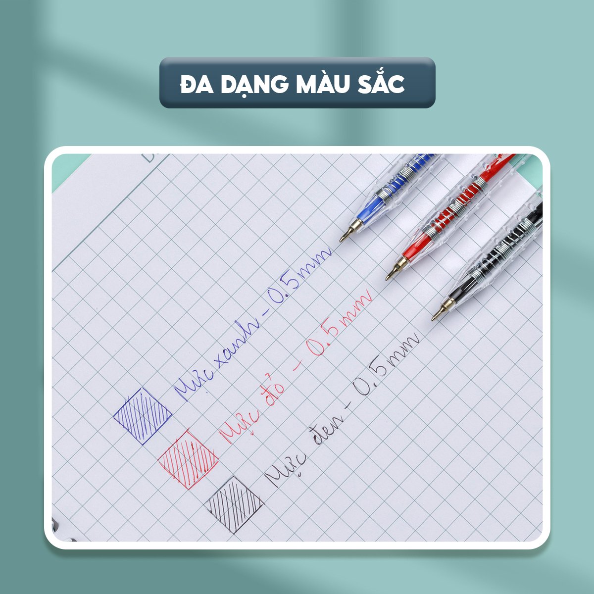 ✨Combo 5/10/20 Bút bi Thiên Long TL-089 ngòi 0.5mm mực xanh đỏ đen dạng bấm cò nơi cầm tay có tiết diện tam giác vừa vặn với tay