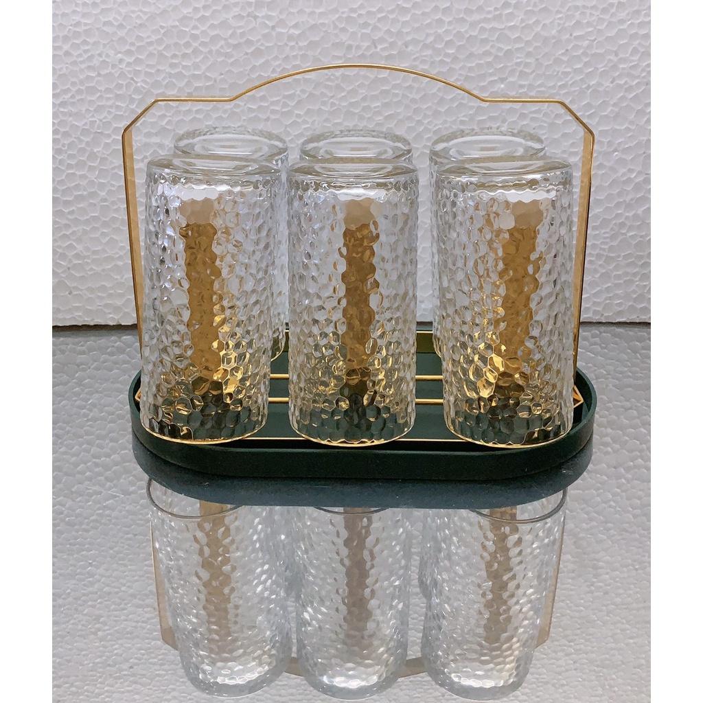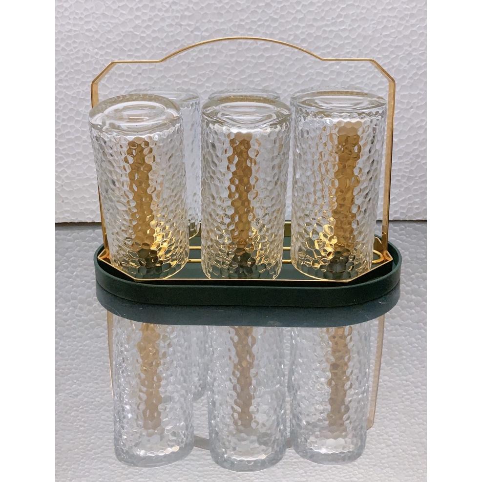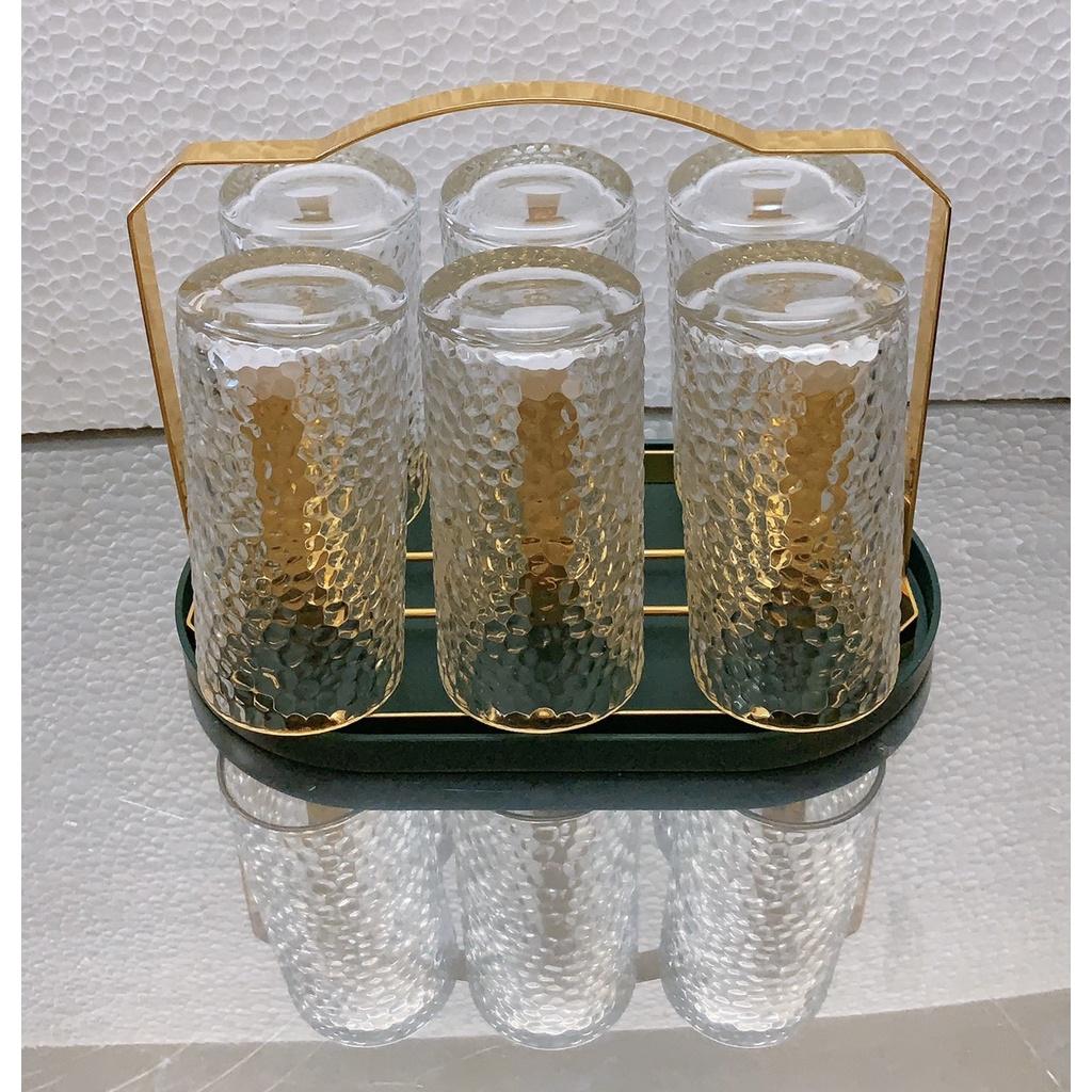 Chất liệu: thủy tinh Bộ sản phẩm gồm: 6 cốc thủy viền vàng VÀ GIÁ ÚP CỐC THEO HÌNH Thiết kế đẹp mắt, phù hợp tiện dụng Độ bền cao, chịu nhiệt tốt, hạn chế