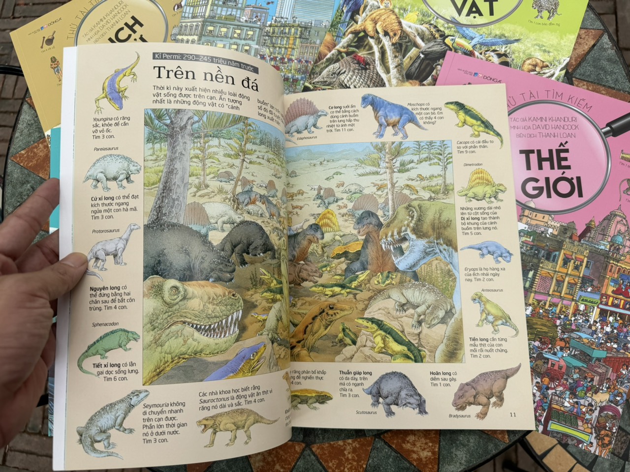 Từ Uyển long to lớn ăn thực vật đến những đàn Linh đạo long ăn thịt nguy hiểm, trong những trăng cảu cuốn sách tranh tuyệt đẹp này là vô số sinh vật cho em tìm kiếm. Ngoài những thách đố thú vị, Thử tài tìm kiếm – Khủng long còn cung cấp cho em nhiều thông tin hấp dẫn về các sinh vật đáng kinh ngạc từng sống trên Trái Đất nhiều triệu năm về trước.