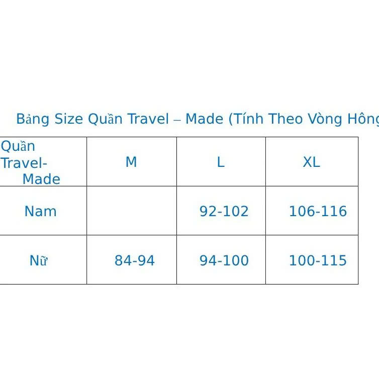 - Tiện lợi cho bạn gái trong những ngày đèn đỏ, trời mưa dầm dề, thời kỳ sinh nở của chị em,... HƯỚNG DẪN CHỌN SIZE Size M: Vòng mông: 84 - 94 cm Size L: Vòng mông: 92 - 100 cm Size XL: Vòng mông: 100 - 115 cm QUẦN LÓT TIỆN LỢI TRAVEL-MATE NỮ