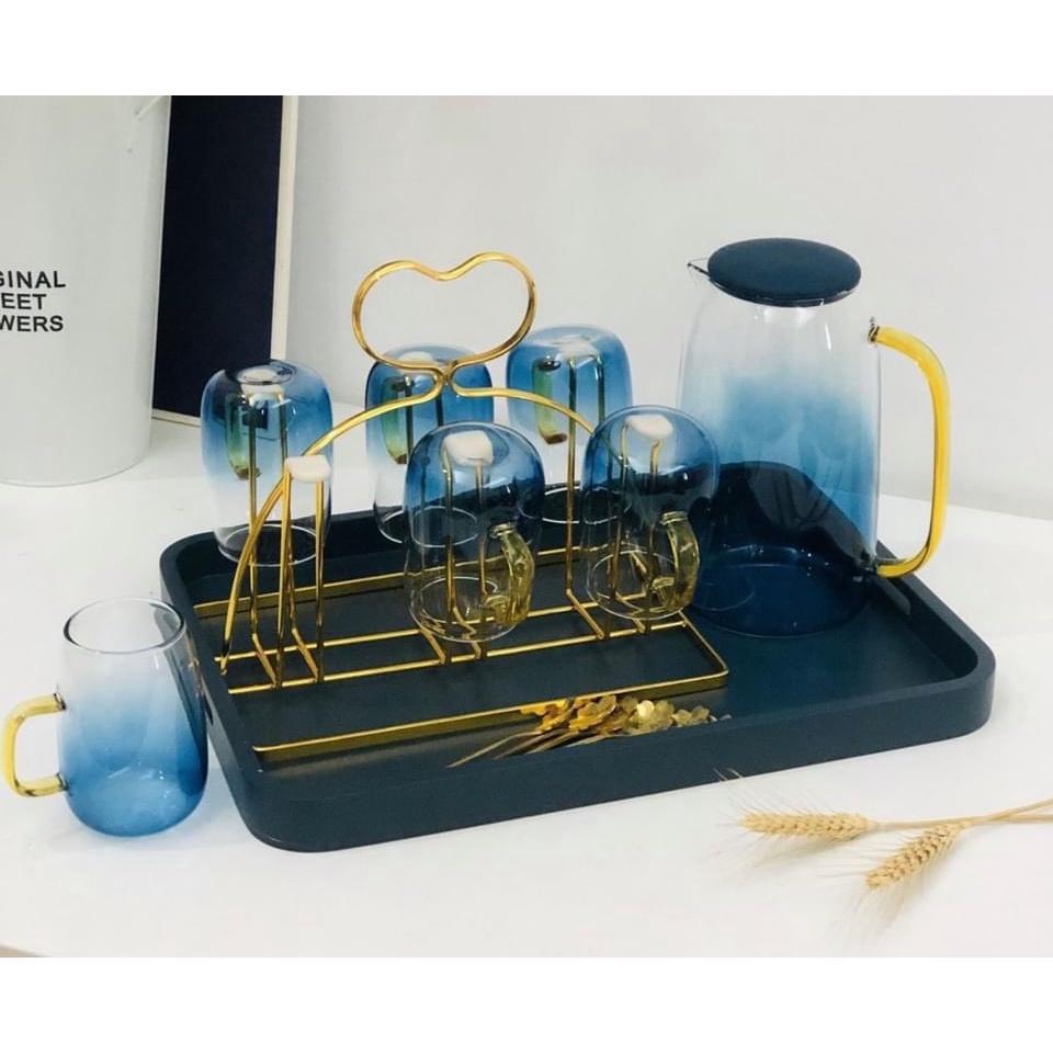 ✨COMBO BÌNH ĐỰNG NƯỚC UỐNG MÀU XANH BIỂN KÈM KHAY VÀ GIÁ ÚP CỐC