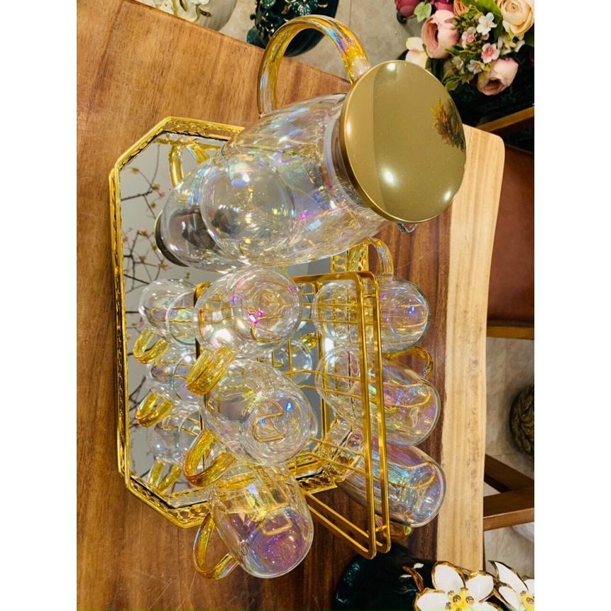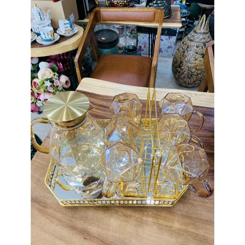 ✨Combo bộ bình đựng nước thủy tinh cao cấp 6 cốc kèm khay và giá úp mạ vàng