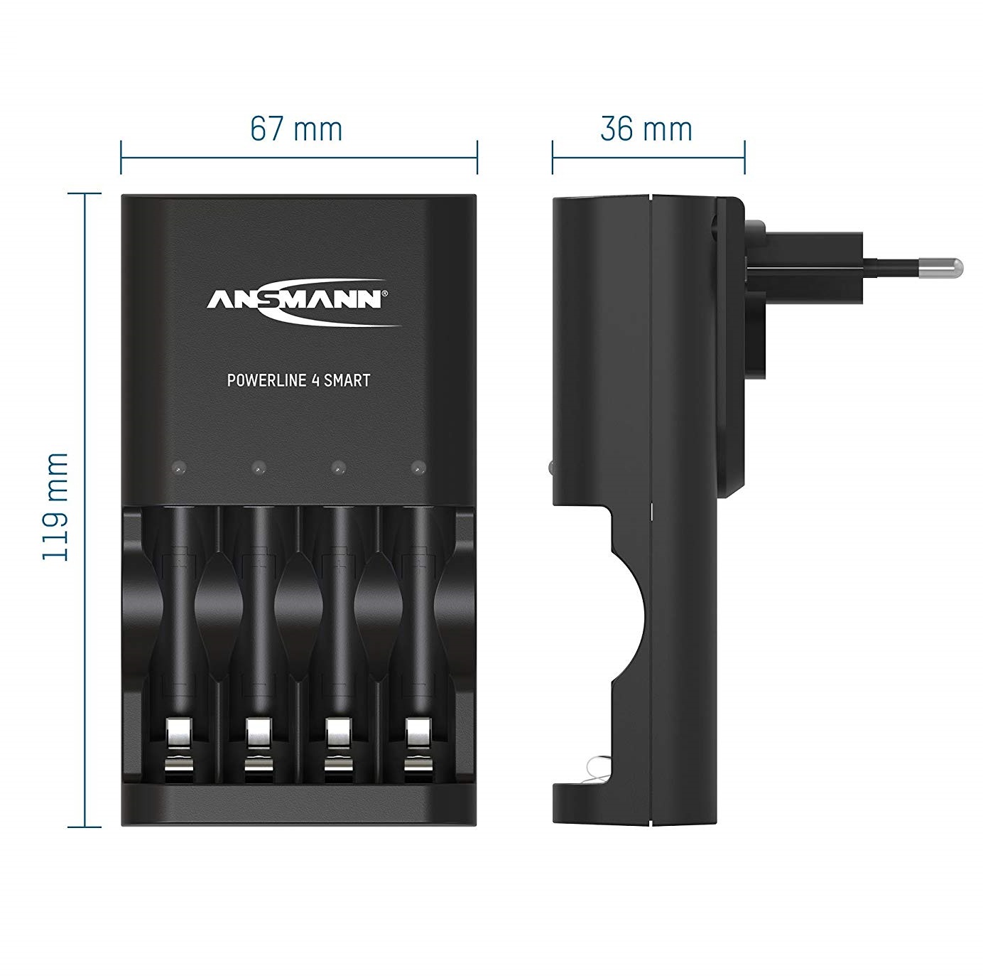 Bộ sạc mới của ANSMANN có thể sạc cùng một lúc cho 1 tới 4 pin AA hoặc AAA (NiMH/NiCd). Thiết kế thông minh, kèm 4 pin AA-2500mAhSạc được từng pin hoặc 4 pin đồng thời. Tự động ngắt khi phi đầyKiểm soát quá trình sạc cho từng pin. Phát hiện và ngừng sạc khi Pin bị lỗiHiển thị tình trạng pin bằng nhiều màu LED cho mỗi khe sạcChân sạc theo chuẩn quốc tế và có thể tháo rời, rất tiện cho việc xếp gọn khi đi du lịch.