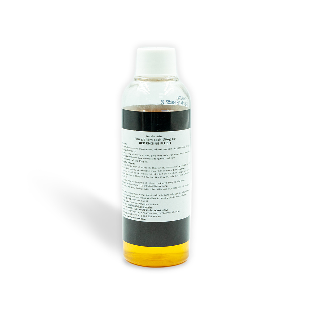 - Hỗ trợ kéo dài tuổi thọ động cơ. Đóng gói 100ml/ chai 48 chai / thùng Khuyến nghị sử dụng Sản phẩm sử dụng được cho tất cả các dòng xe máy 4 thì, 2 thì ( xe số, xe tay ga, xe tay côn, xe phân khối lơn ), động cơ ô tô, xe tải, tàu thuyền, máy cưa, máy cắt cỏ... Hướng dẫn sử dụng Đổ 1 chai súc động cơ Engine Flush 100ml trực tiếp vào tối đa 1.2 lít nhớt cũ trước khi thay nhớt, chạy xe không tải từ 5-10 phút rồi xả bỏ nhớt cũ và tiến hành thay nhớt mới như bình thường. Thời gian sử dụng lại sản phẩm Sử dụng thường xuyên sau mỗi 5.000 - 6.000km để giữ động cơ luôn sạch. Sản phẩm dùng được cho cả động cơ xăng và động cơ dầu Diesel. Sản phẩm mang thương hiệu BCP do Tập Đoàn Năng Lượng Bangchak hàng đầu của Thái Lan sản xuất và nhập khẩu trực tiếp về Việt Nam bởi SONAIMEX.
