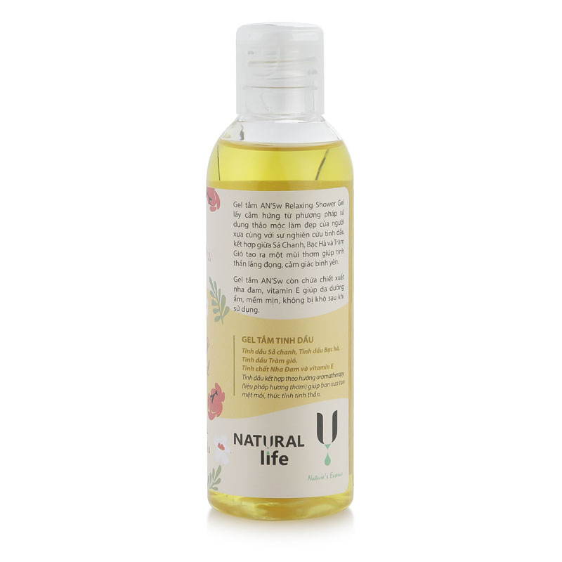 - Tinh Dầu giúp lọc sạch không khí và thư giãn tinh thần với mùi thơm thanh mát, tự nhiên. Cách sử dụng gel tắm AN'Sw Làm ướt cơ thể, cho một ít sữa tắm lên tay hoặc bông tắm, tạo bọt, thoa đều lên cơ thể, thư giãn rồi tắm lại với nước sạch. Cách bảo quản gel tắm AN'Sw