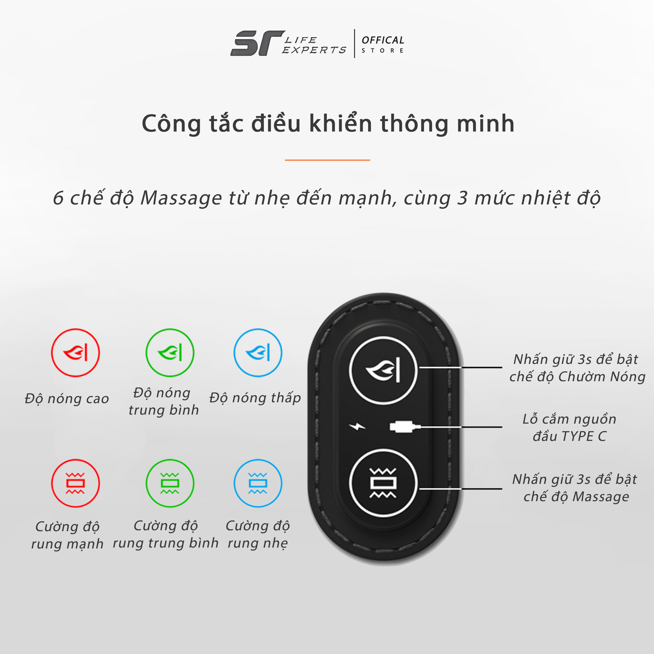 - Chức năng: + Tựa đầu: 3 cường độ rung + Tựa lưng: 3 cường độ rung & 3 mức nhiệt