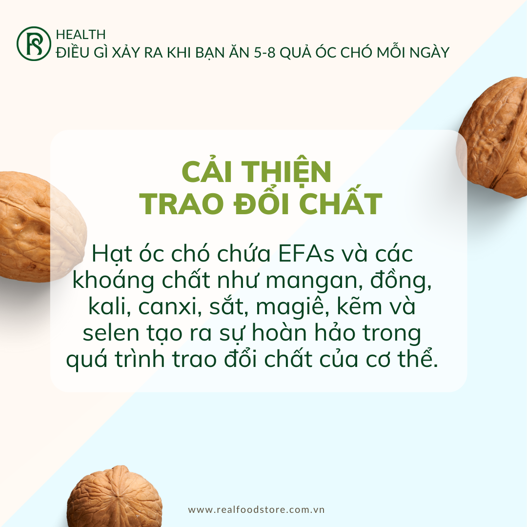 (Hình ảnh mẫu mã, bao bì sản phẩm sẽ thay đổi theo từng giai đoạn) HẠT ÓC CHÓ REAL FOOD được rang giòn, khi ăn có vị ngọt bùi, béo. Phù hợp để cung cấp dinh