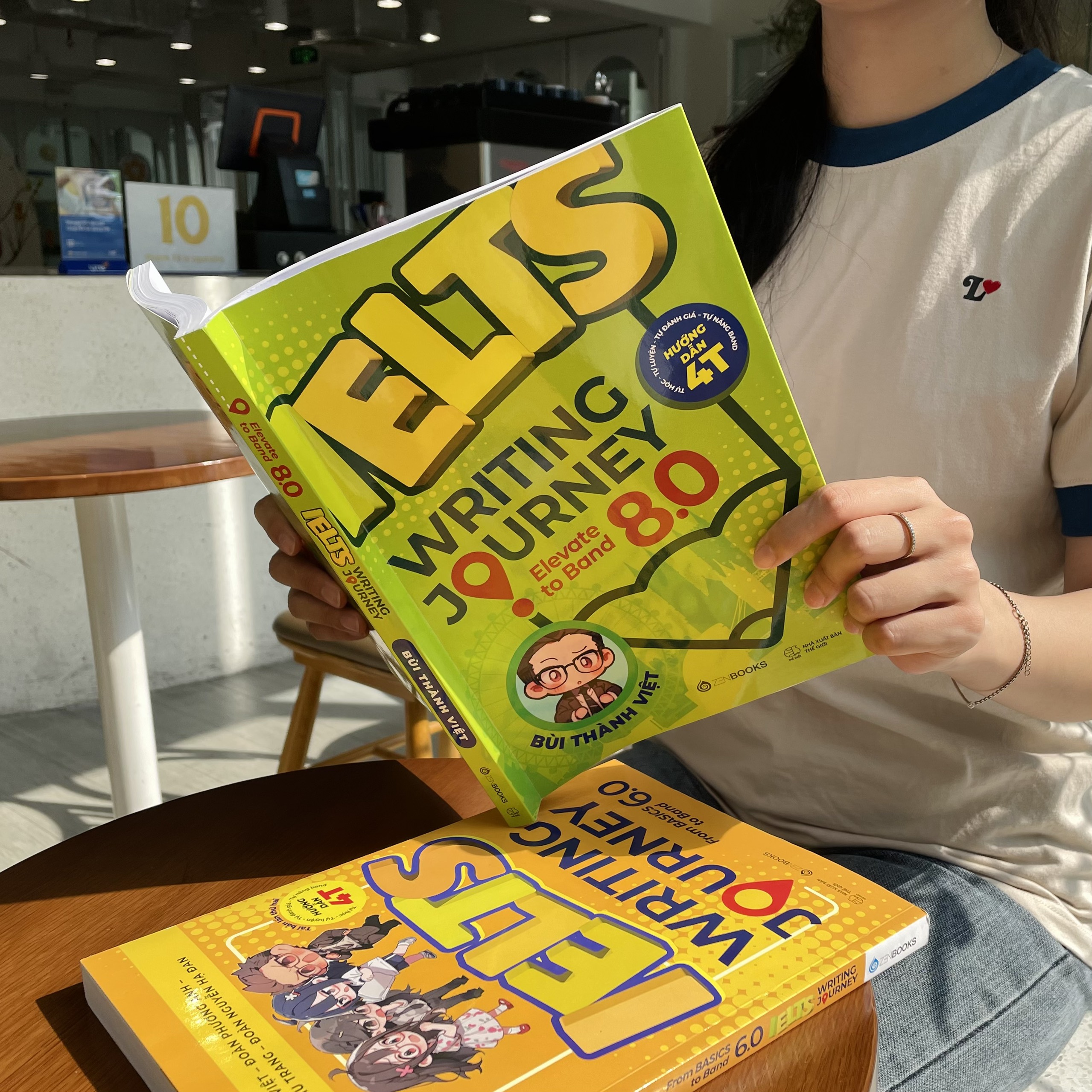 Combo IELTS Writing Journey: From Basics To Band 6.0 + Elevate To Band 8.0 (Bộ 2 Cuốn) 1. IELTS Writing Journey - From Basics To Band 6.0. Lộ trình 3 tháng tự học IELTS Writing,